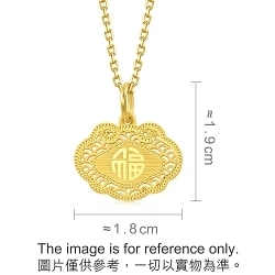 Chow Sang Sang - This gold pendant features an auspicious cloud design, crafted with a mold casting technique to create its exquisite appearance. With hollow floral patterns and the engraved words "Fu" (meaning "blessing") in the center, symbolizing good luck and well-being.