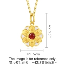 Refined by coating, the gold “Om Mani Padme Hum” pendant features the Buddhist mantra and lotus that carry profound historical meanings. The red chalcedony stamen is surrounded by the pedals carved with the six-character mantra.