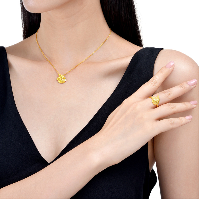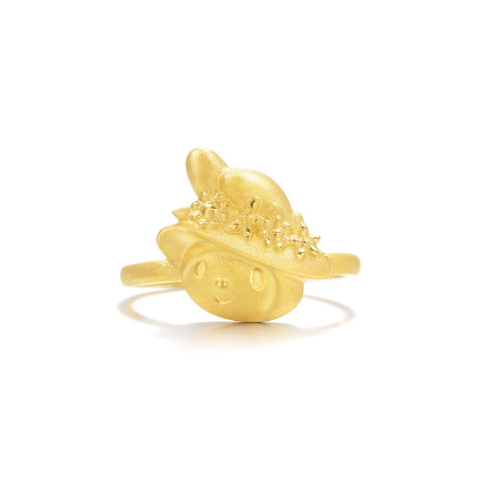 周生生My Melody 戴上用鮮花圍邊的帽子慶祝生辰,平添一份欣欣向榮的蓬勃生氣。戒指以 999.9 黃金打造甜美笑容,在指尖散發歡欣,配合浮雕工藝,造型立體像真,戒指亦更加輕巧細緻,完美呈現 My Melody 的可愛趣緻。