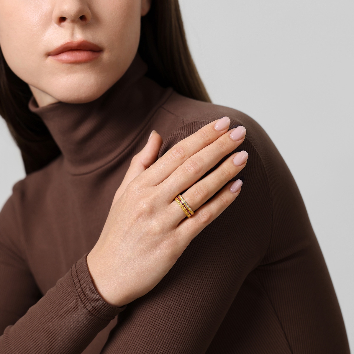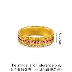Chow Sang Sang - Crafted with Traditional Goldsmith Techniques, this gold ring with diamonds and rubies features intricate hand-brushed filigree work, artfully intertwining gold into a dimensional texture. Centred with lustrous rubies, it embodies prosperity and abundance.