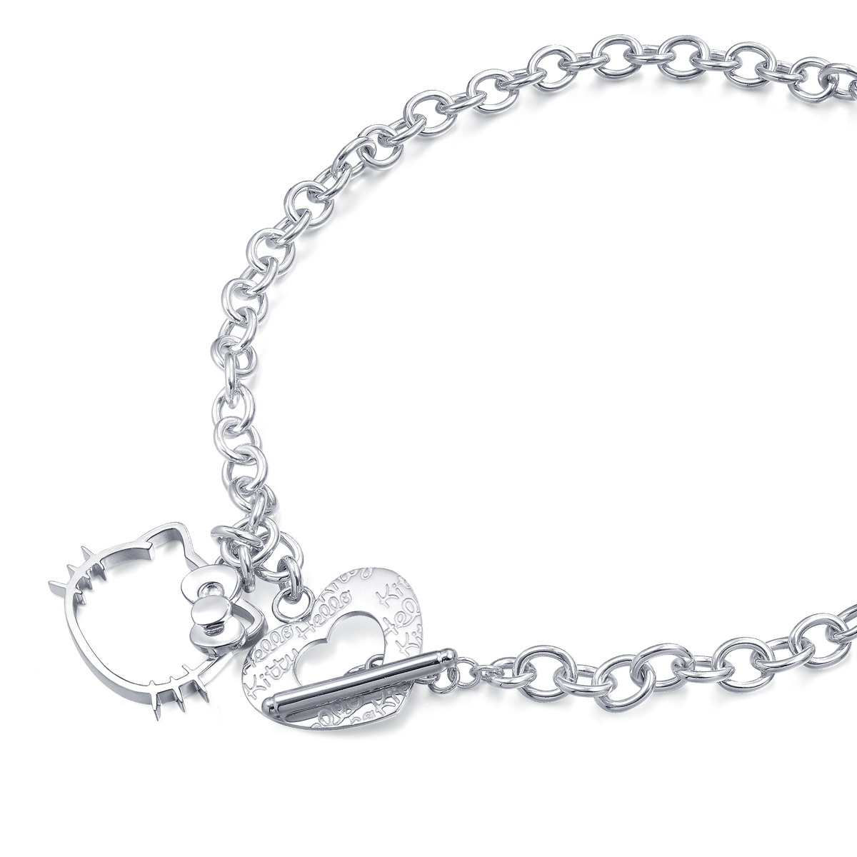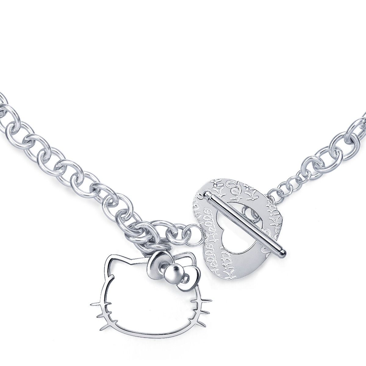 A silver Hello Kitty necklace from the 'Hello Kitty Silver Collection'. The simple and sleek outline emphasises Hello Kitty's cuteness in a glamorous fashion.