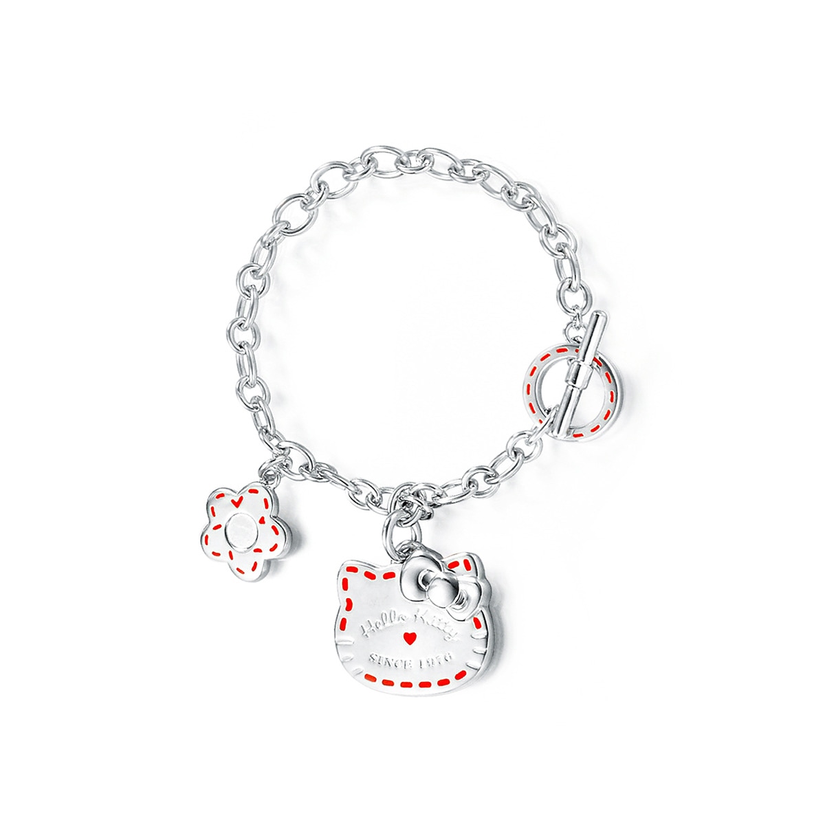 「Hello Kitty 銀飾系列」,簡約的Hello Kitty標誌性元素造型,表面加上紅色縫針設計邊緣,更顯獨特時尚,適合日常佩戴。