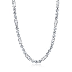 周生生足鉑金頸鍊結合圓珠及筒形設計,以批花工藝呈現炫目光芒,無論是單獨配搭或混合配搭,瞬間成為焦點所在。