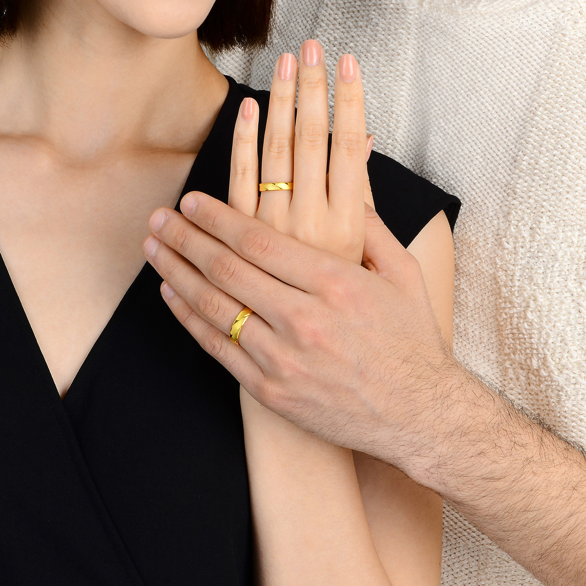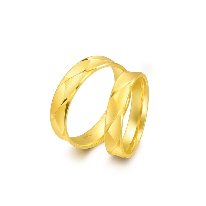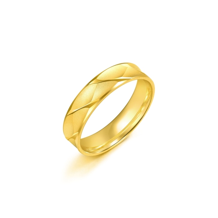 周生生意式黃金風格車花設計,戒指內側為微卜,舒適佩戴設計造工。