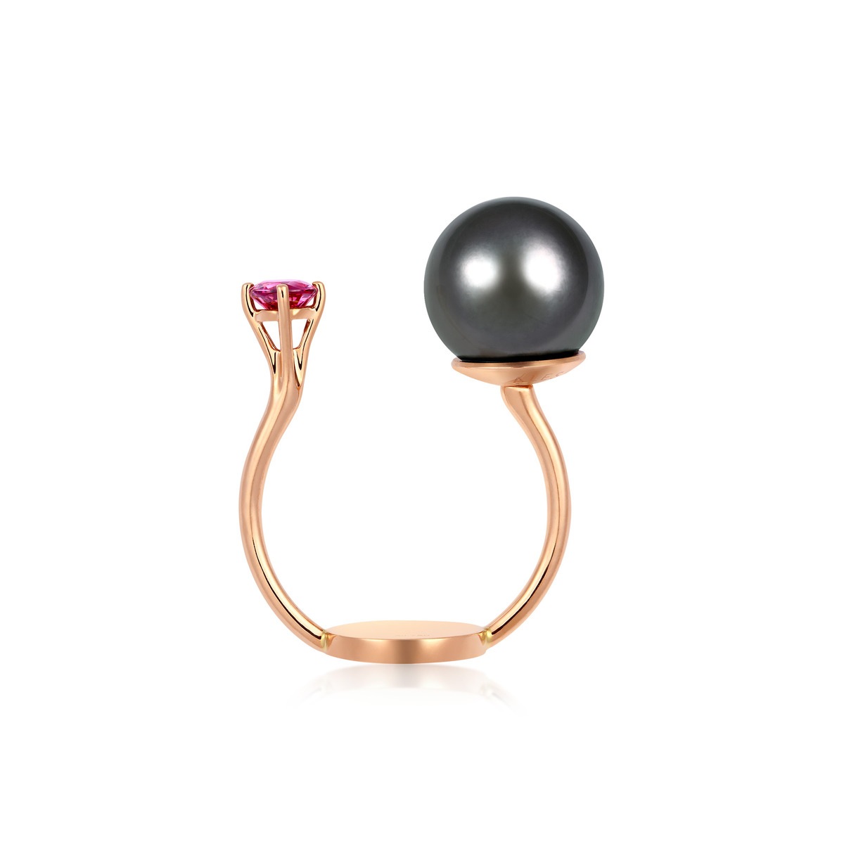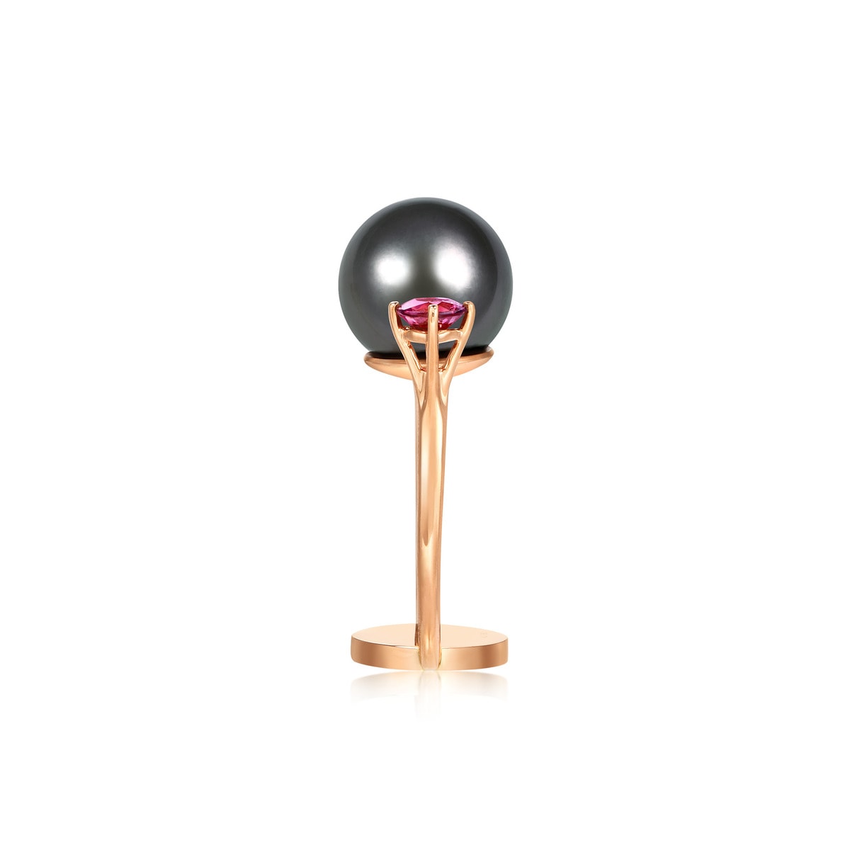 「Around Midnight」18K玫瑰金大溪地珍珠戒指