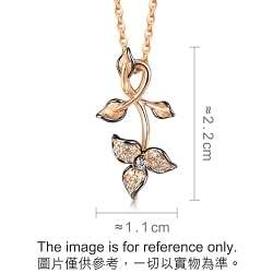 周生生鑲嵌美鑽的延齡草正盛放著,栩栩如生的葉子勾勒出富線條美的吊墜。綻放的花瓣與葉子以黑色黃金圍繞,形態更為立體突出。