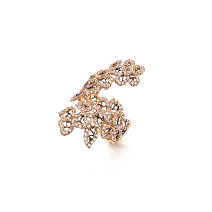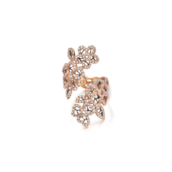 周生生以18世紀宮廷禮服上的喱士圖案作設計靈感,神秘高貴,優雅動人。