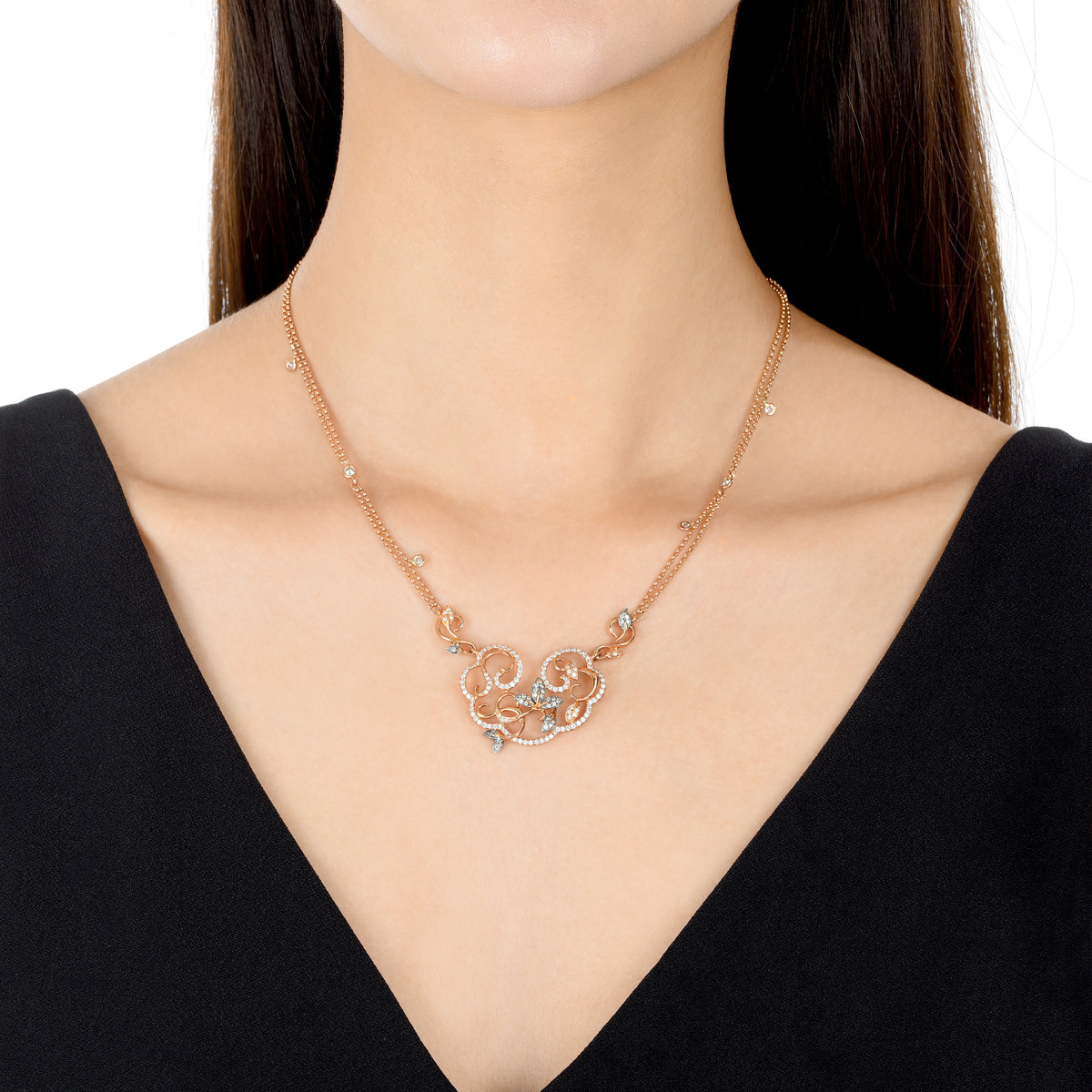 Daily Luxe 「幸」18K紅黑分色黃金啡鑽石頸鍊