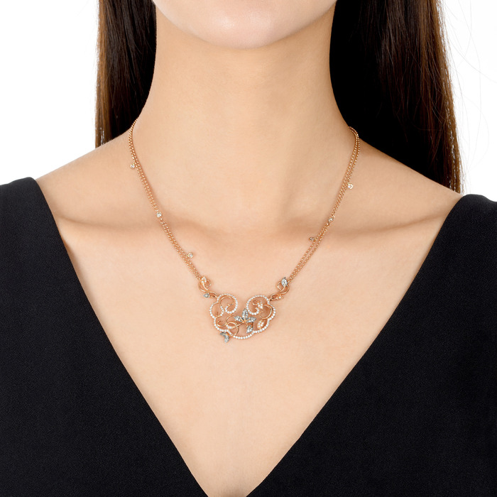 18K/750分色黃金啡鑽石頸鍊