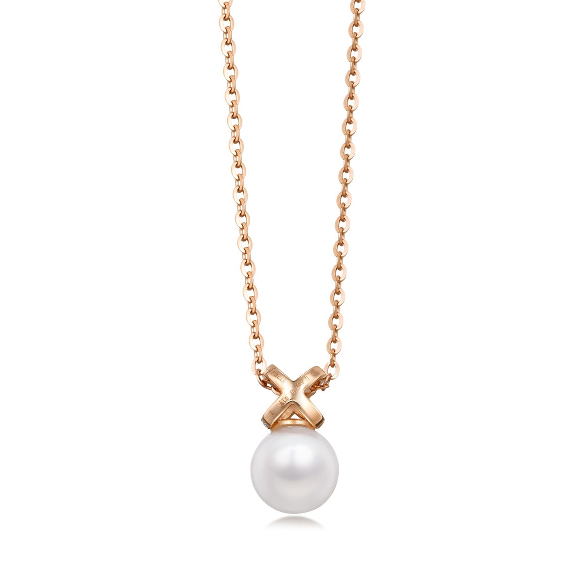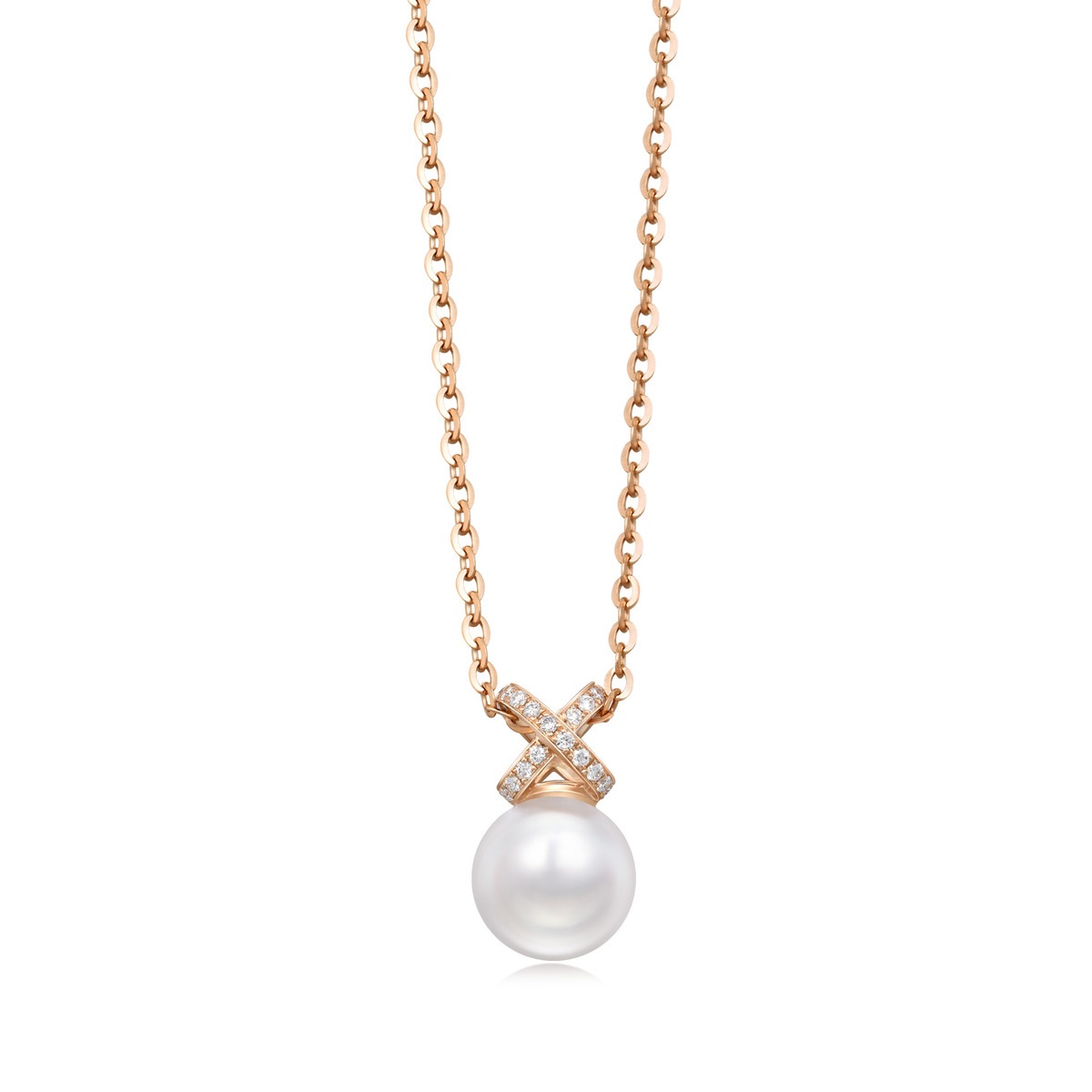 18K/750紅色黃金日本Akoya養殖珍珠吊墜