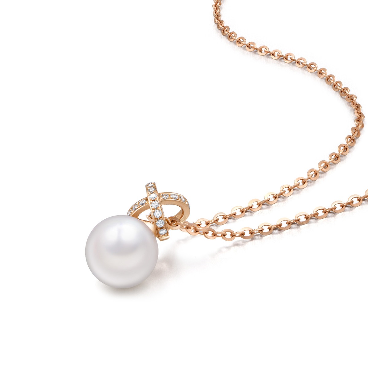 La Pelle 18K紅色黃金Akoya珍珠吊墜