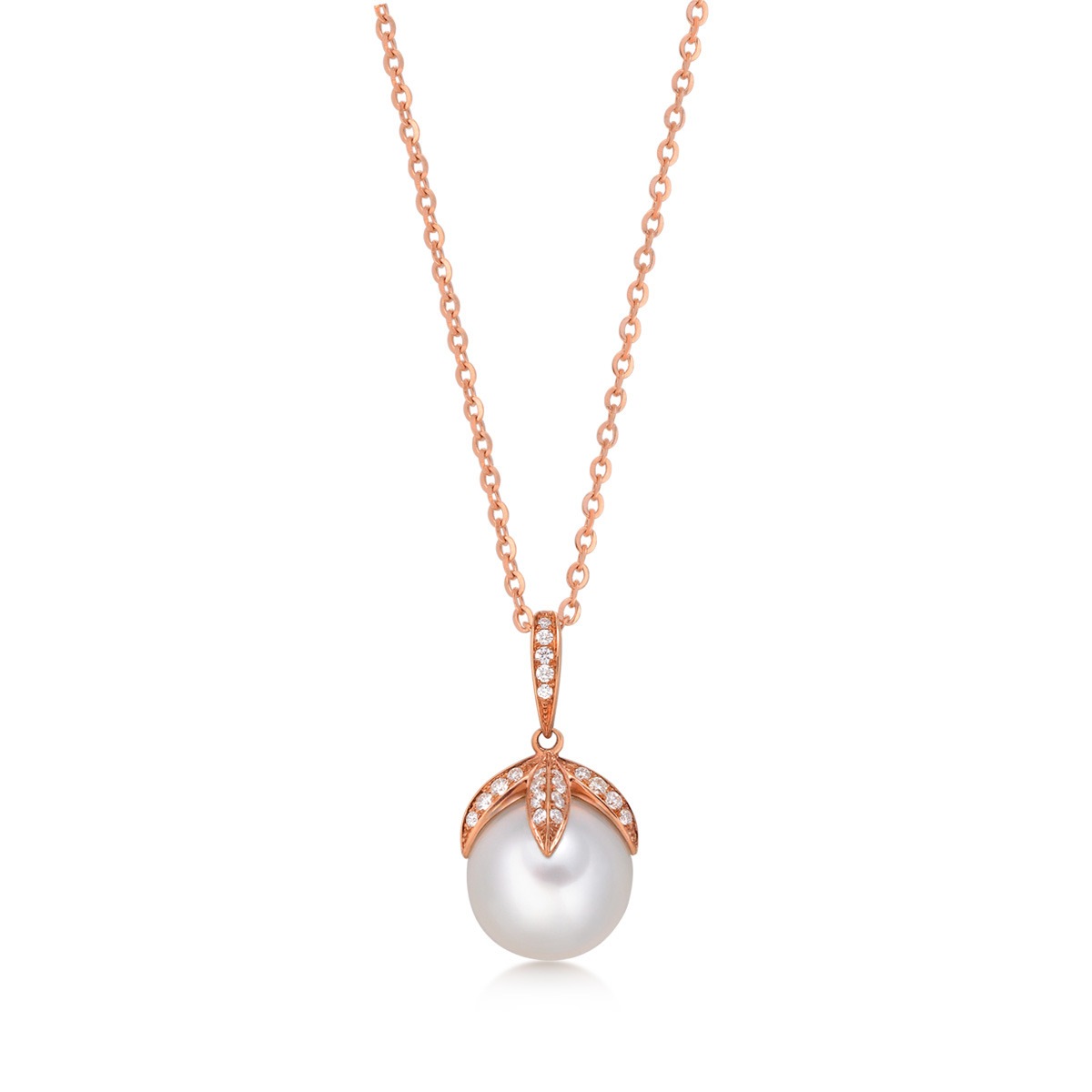 精緻優美的南洋珍珠,配上鑲滿鑽石的葉型吊飾。簡約、流暢的線條設計,極緻優雅。LaPelle系列選用最優質的日本珠、南太平洋珍珠及大溪地黑珍珠,以珍珠為主調賦以不同設計風格,煥發溢彩流光,如珍愛承傳,恆久典雅。