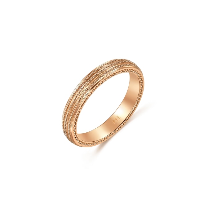 18K紅色黃金戒指,以細緻珠邊縈繞戒圈表面,層次立體豐富,於簡約設計中彰顯獨特細節,展現摩登時尚風格,頃刻綻放迷人魅力。