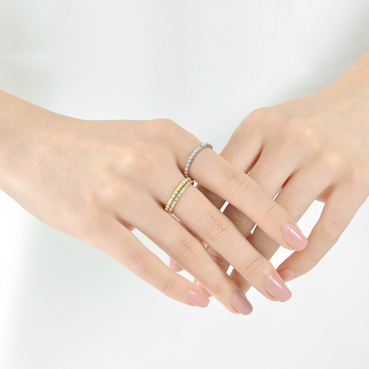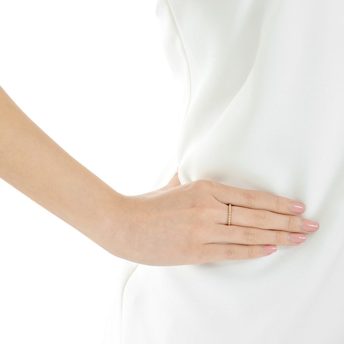 周生生極致幼細的K金戒指,表面鑲上碎石,每顆輝映著獨特光芒,為您的日常生日送上小驚喜。
