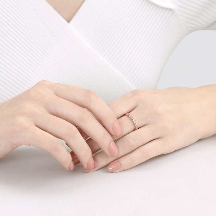 周生生18K 紅色黃金鑽石戒指,以排鑽設計盡顯簡約純粹,特別採用心形爪鑲嵌美鑽,訴說最動人的甜蜜宣言。線條細膩優雅,適合日常配搭,更可與其他戒指疊戴,創造個人專屬風格。