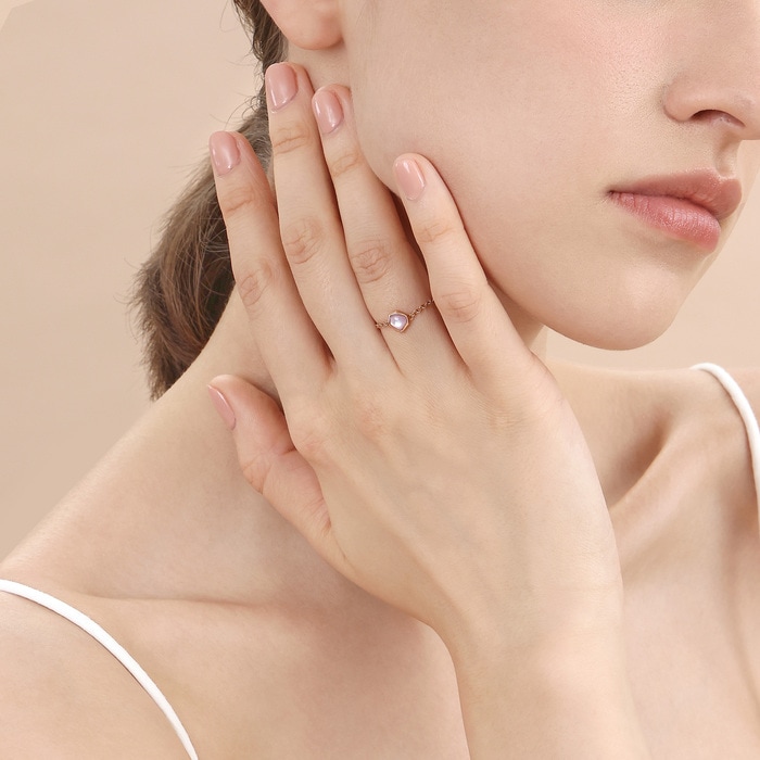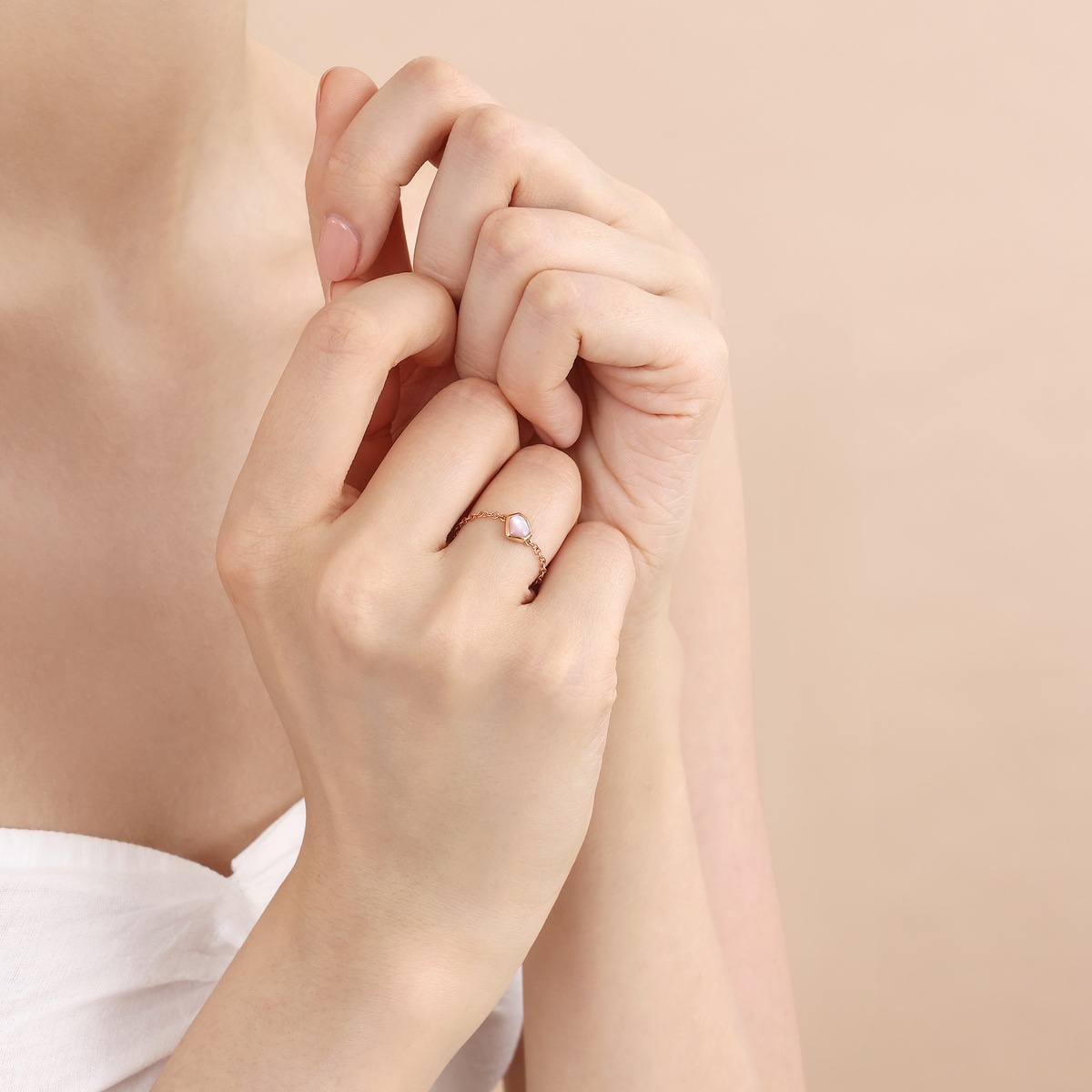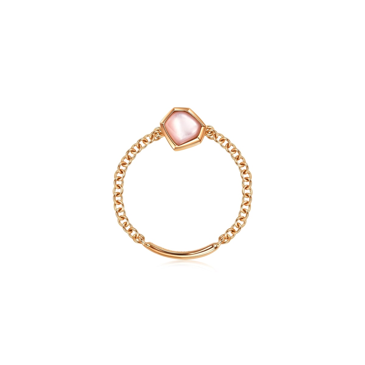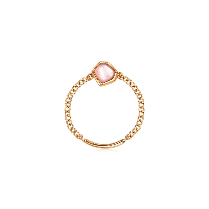 別出心裁的粉紅珍珠貝母軟身戒指設計,加上不規則及不對稱的幾何線條,呈現珍珠貝母最原始純粹的柔和與自然美。系列更可以迭戴方式隨意混搭,以無限創意盡現個人風格。