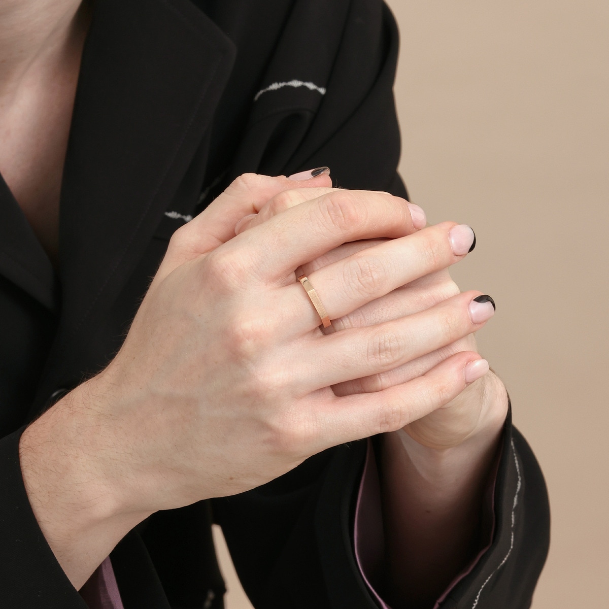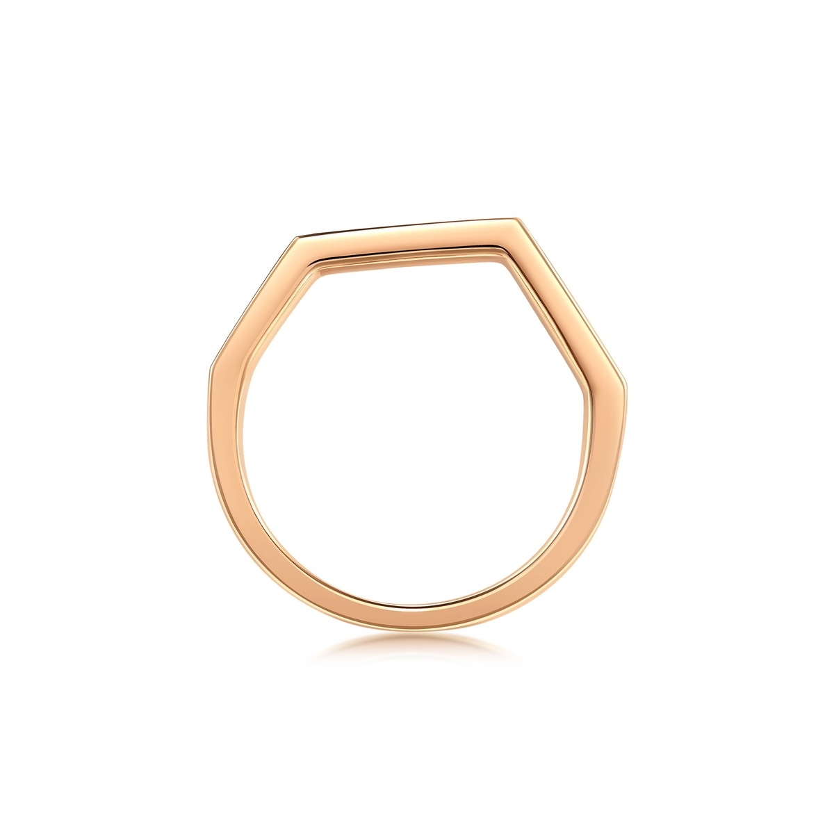 周生生取品牌商標中的「M」解構重組,18K 玫瑰金粗身戒指設計簡潔,糅合帶稜角的幾何色彩,可與同系列戒指疊戴,加冕您的多面與多變。