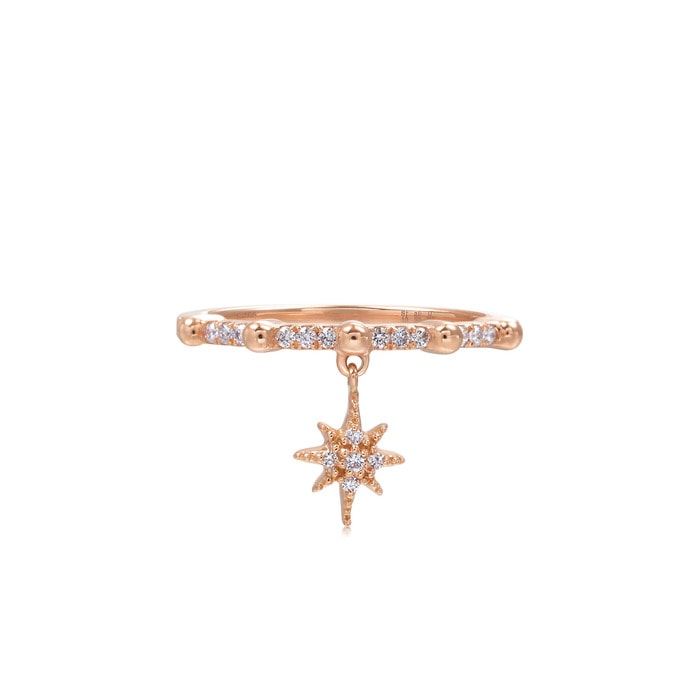 閃鑽與小圓珠交互相間,襯上鑲有鑽石星形小吊飾,簡約易襯。