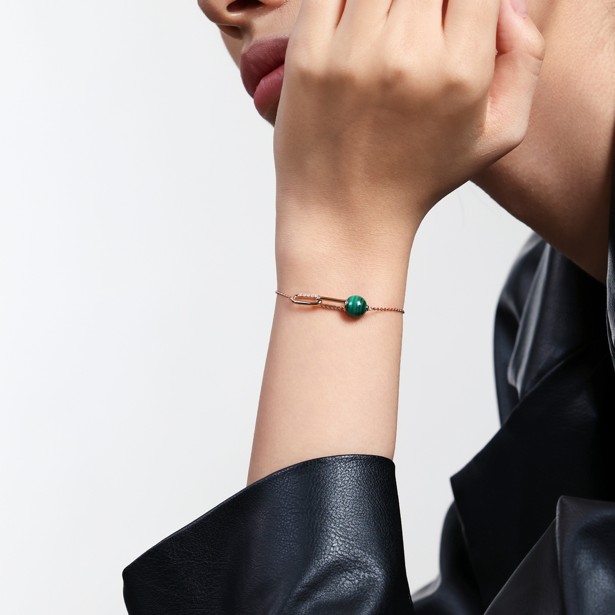 18K/750玫瑰金孔雀石手鍊