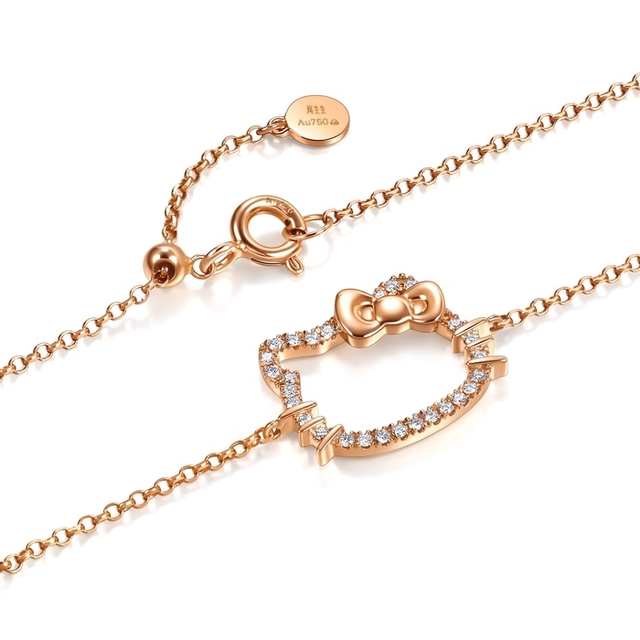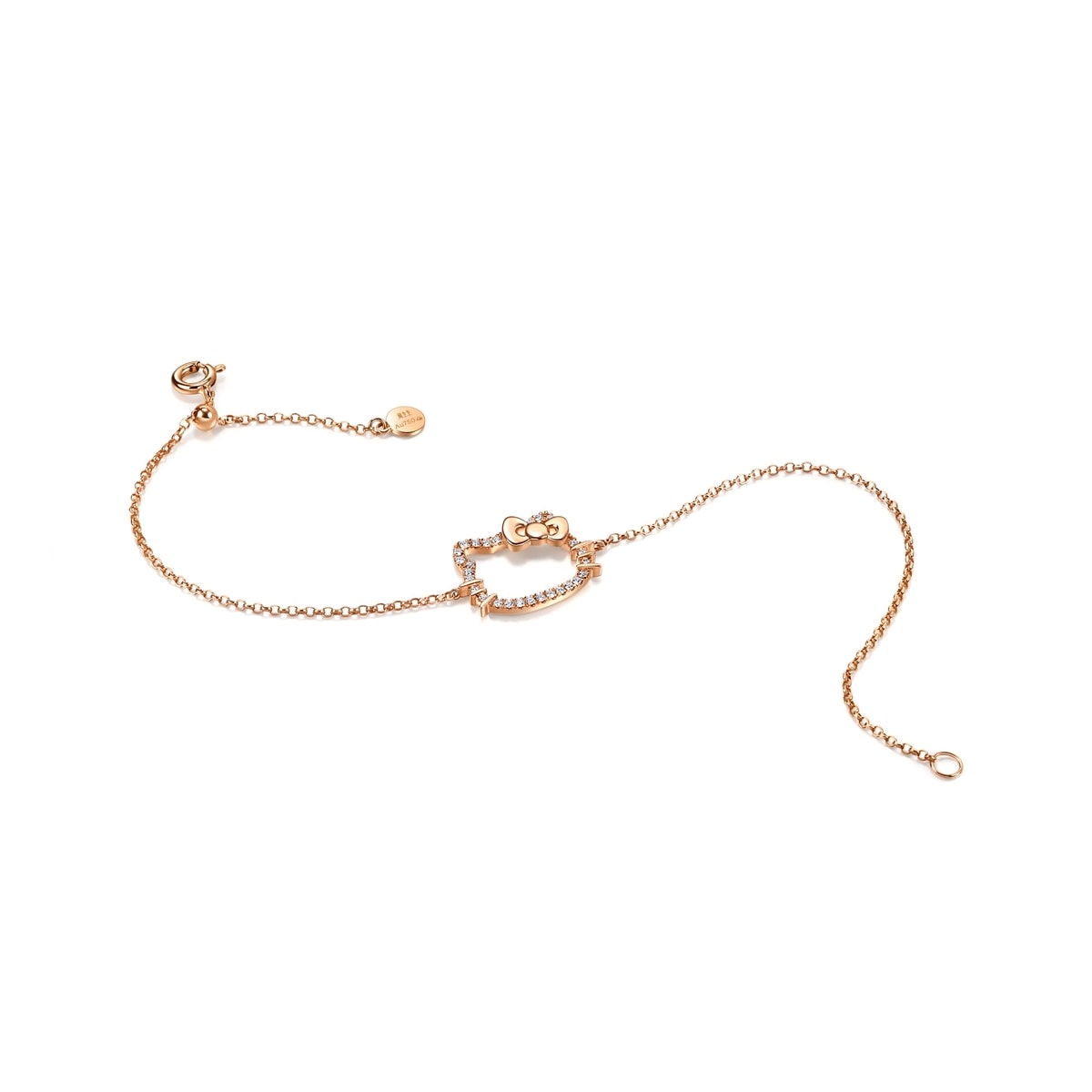 「Hello Kitty」18K玫瑰金鑽石手鍊
