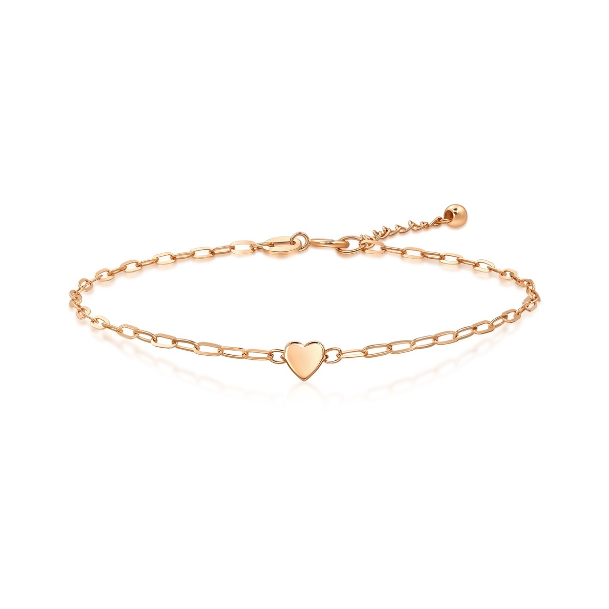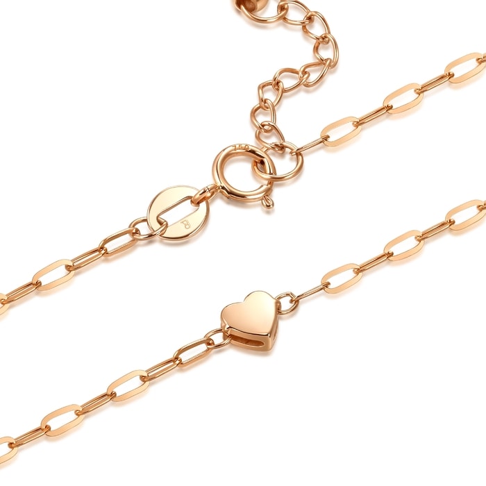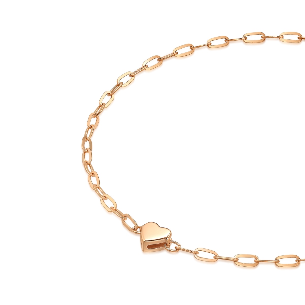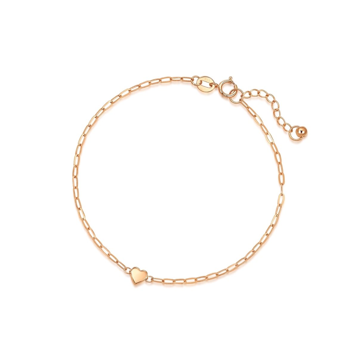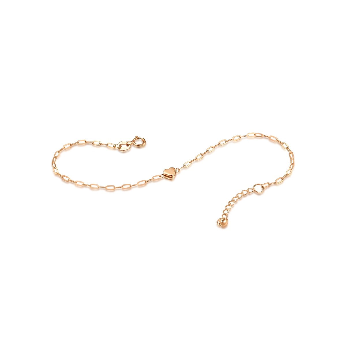 周生生18K 紅色黃金心形手鍊,配以長十字鍊,可愛浪漫。