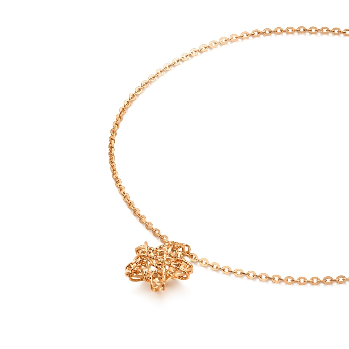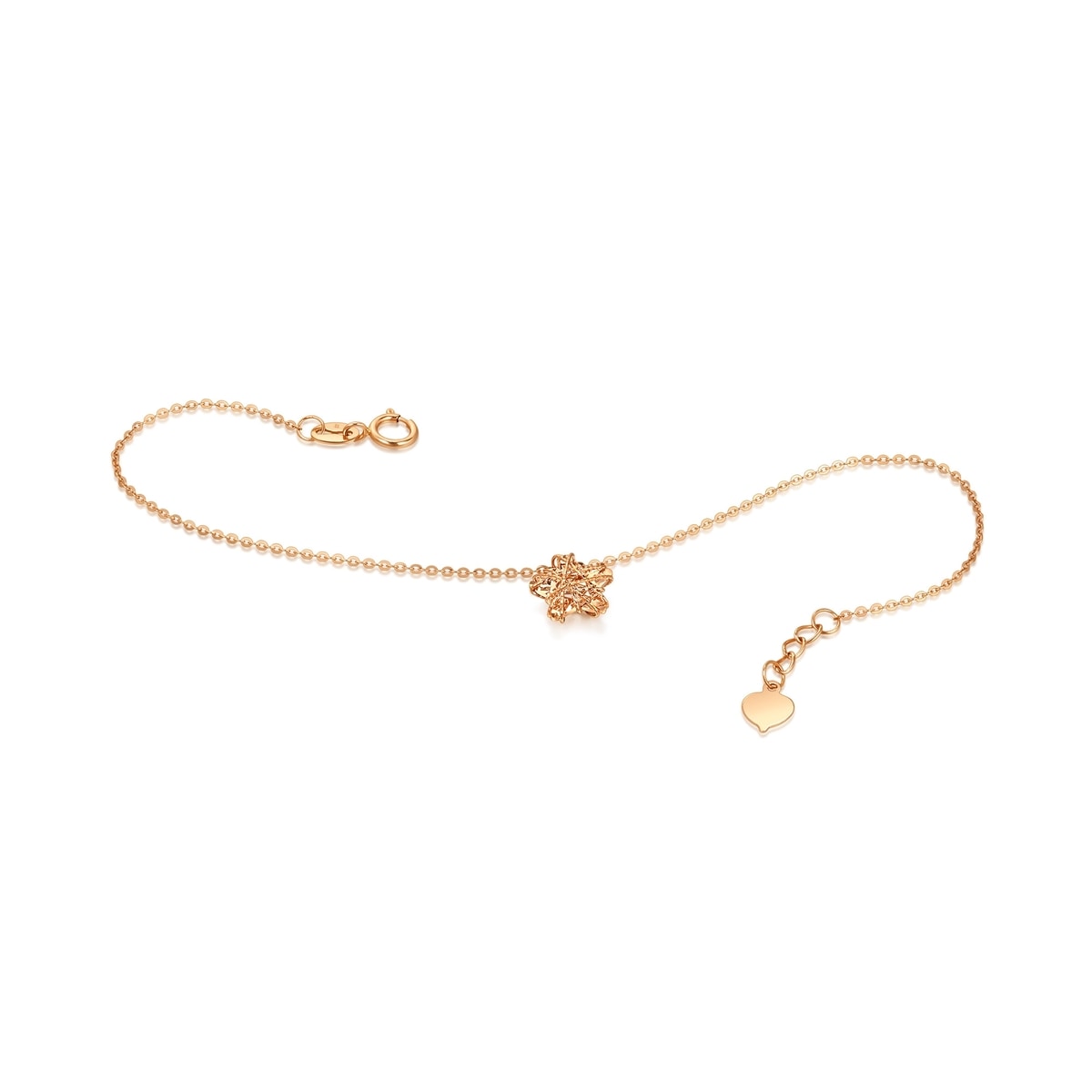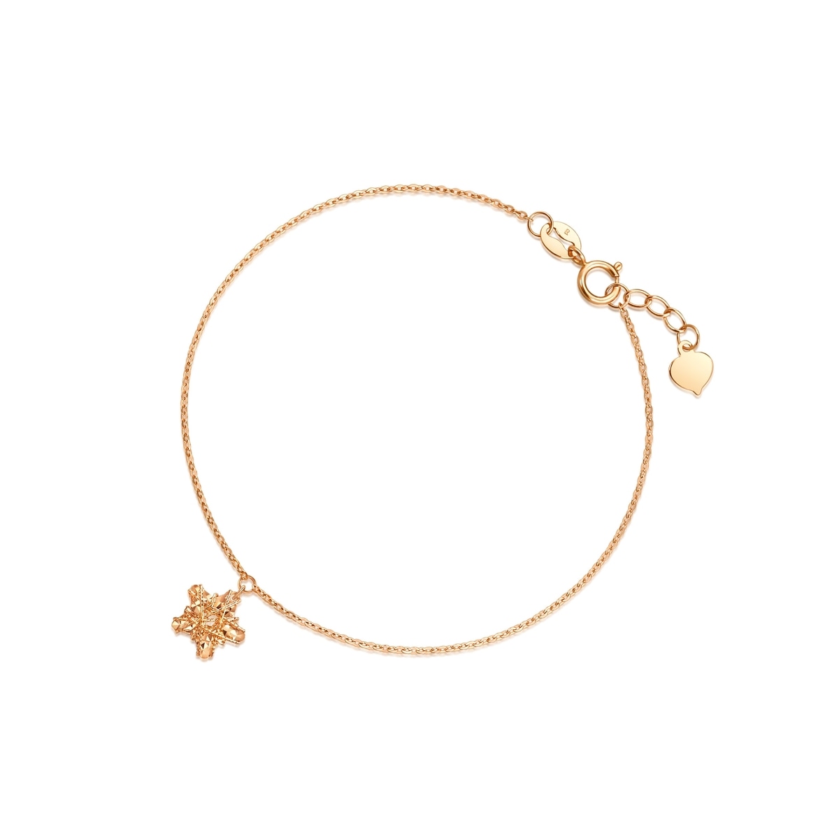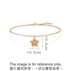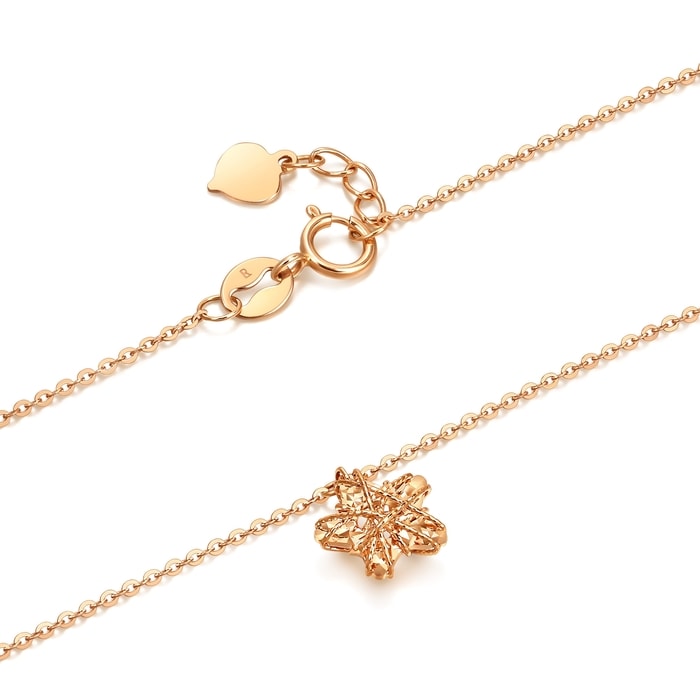 周生生18K紅金星形手鍊,以人手工藝將黃金拉成絲狀,再編織成立體星星形態。每條手鍊上的雪花型態均與別不同,獨一無二。