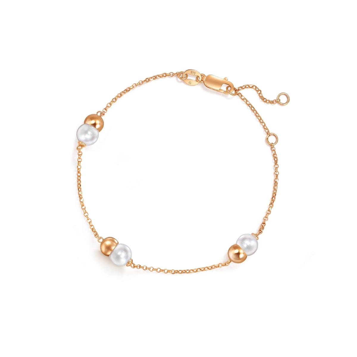 18K/750玫瑰金淡水養殖珍珠手鍊