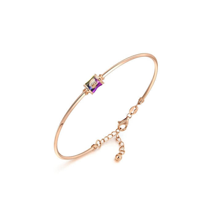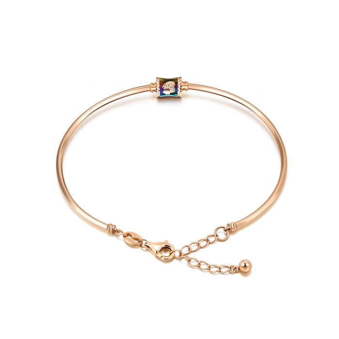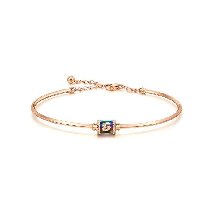 周生生18K紅金手鐲,炫幻奪目的表面顏色以獨特的真空、高溫鐳射加工處理;車花位置的不同造就出每件獨一無二的顏色; 在幻彩顏色的襯托下,勾勒出精緻獨特的心型圖案,甜美動人。