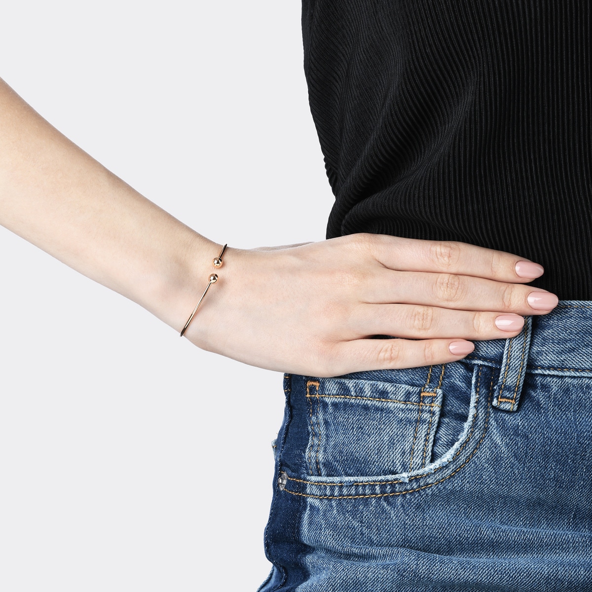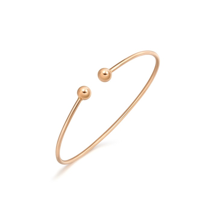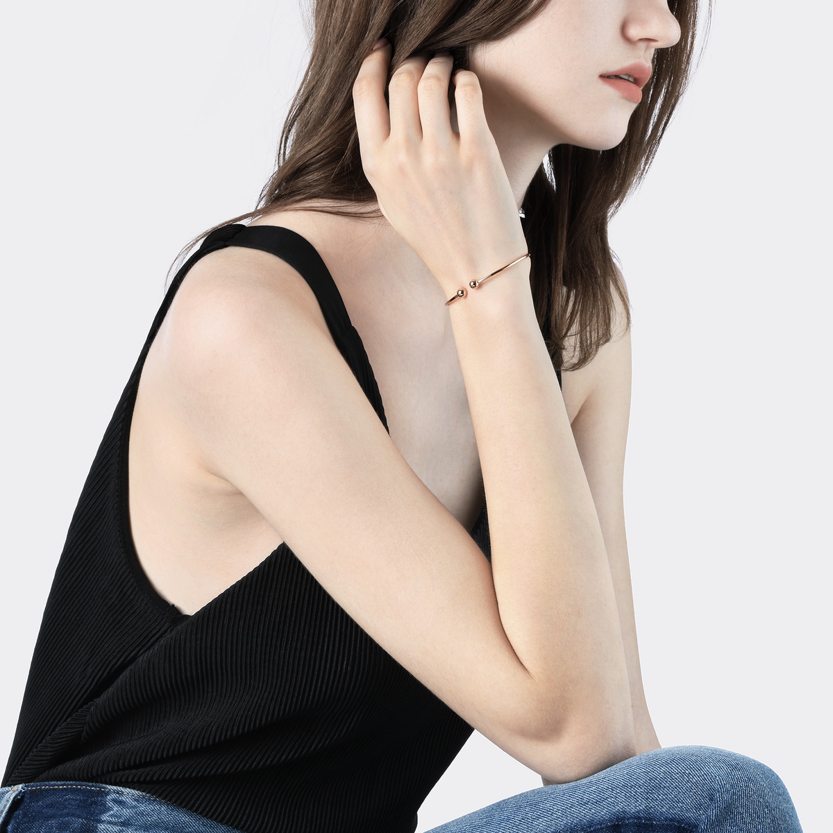 開口式手鐲,兩端呈圓形,簡約易襯。幼身設計為日常穿搭帶來小點綴,可混搭戒指,或疊戴不同手鐲,展現多變風格。
