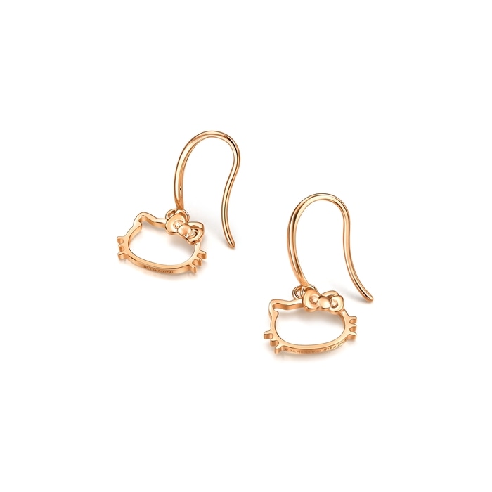 周生生運用簡約線條勾勒出 Hello Kitty 的甜美輪廓,18K 玫瑰金耳環光澤溫潤,精緻時尚,是女生日常配飾的可愛之選。
