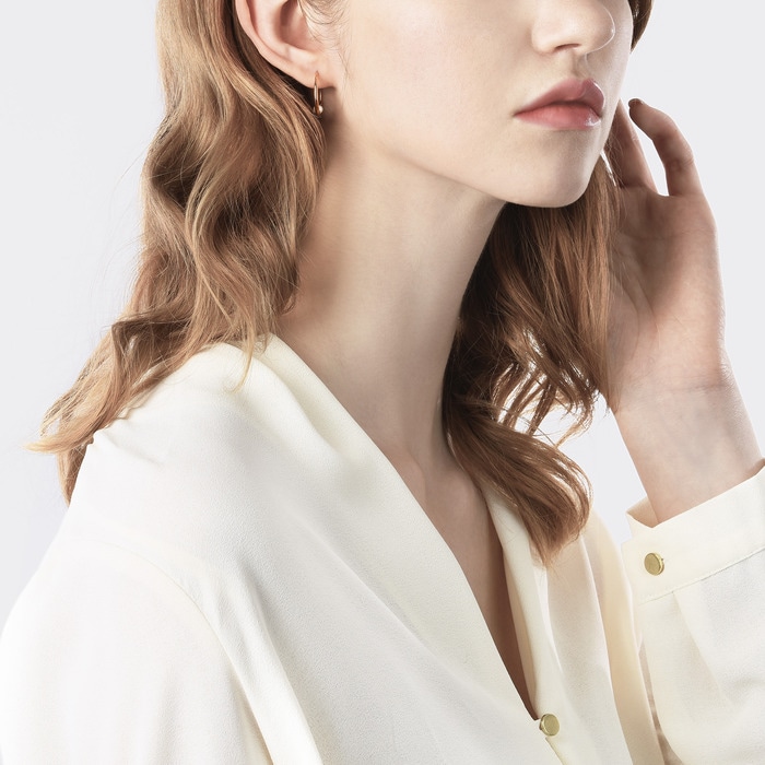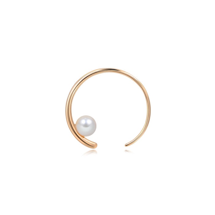 18K 玫瑰金珍珠耳環,簡約曲線點綴不同造型。