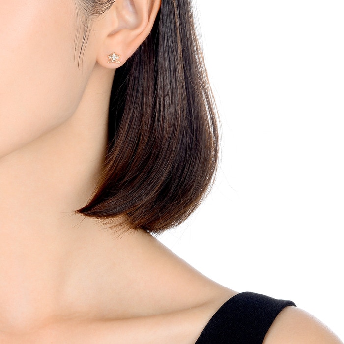 周生生耳環以盛放的蓮花設計,綴入美鑽,葉片刻上精緻紋理,充滿生命力。單只款式讓你發揮 DIY 創意,輕鬆混搭出個人獨有風采。