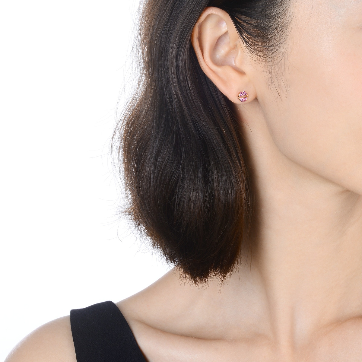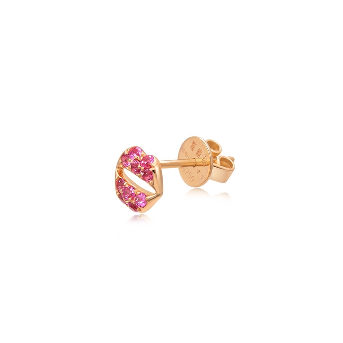 耳環以櫻桃粉唇造型設計,綴入粉紅藍寶石,向你所愛勇敢說出心底話。單只款式讓你發揮 DIY 創意,輕鬆混搭出個人獨有風采。