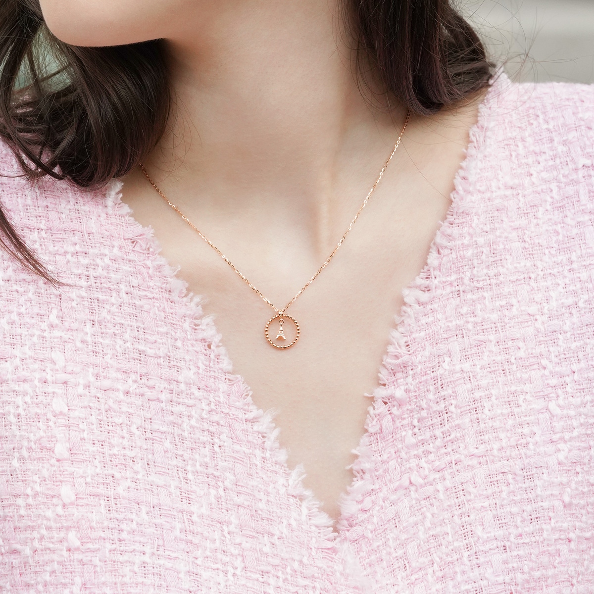 18K玫瑰金鐵塔頸鍊
