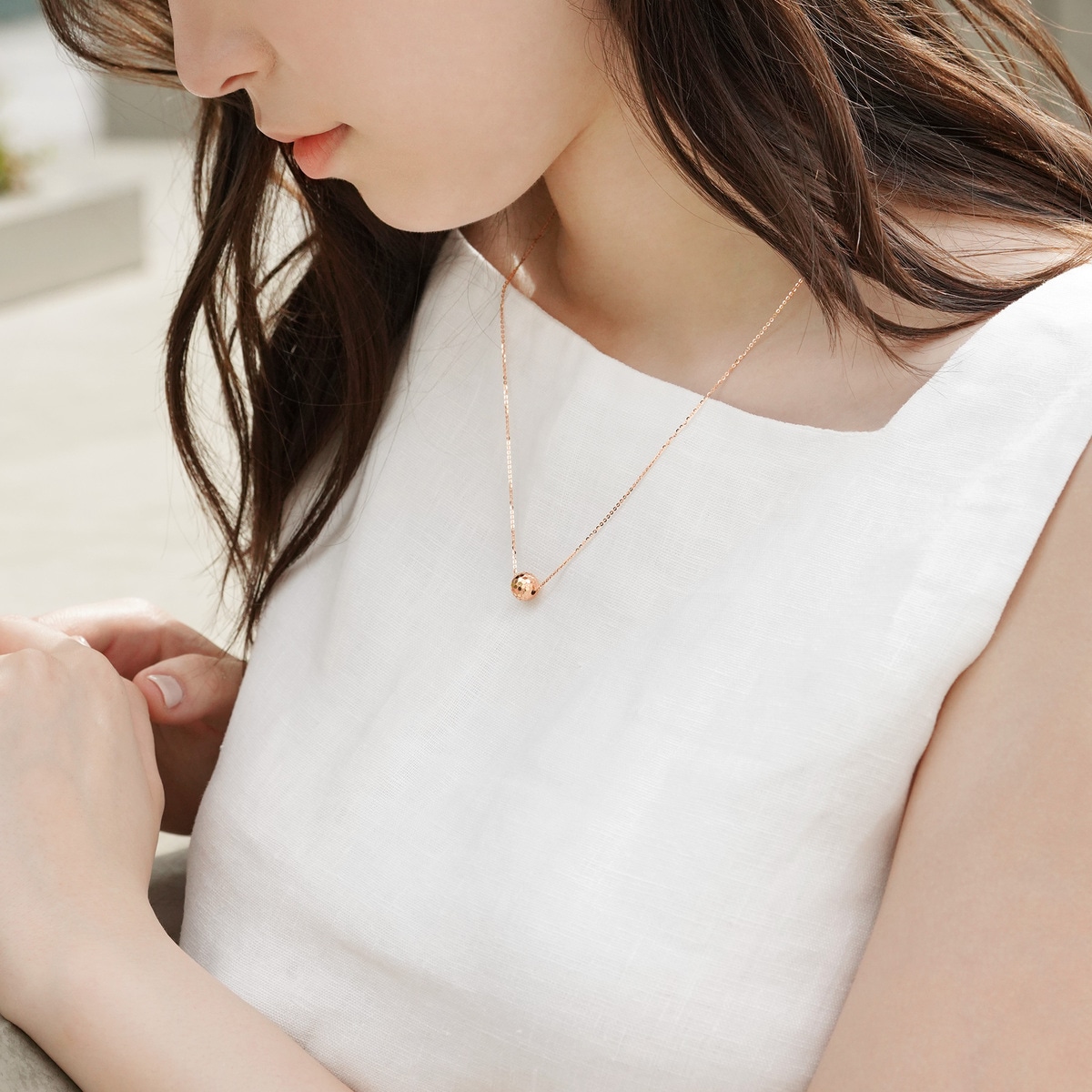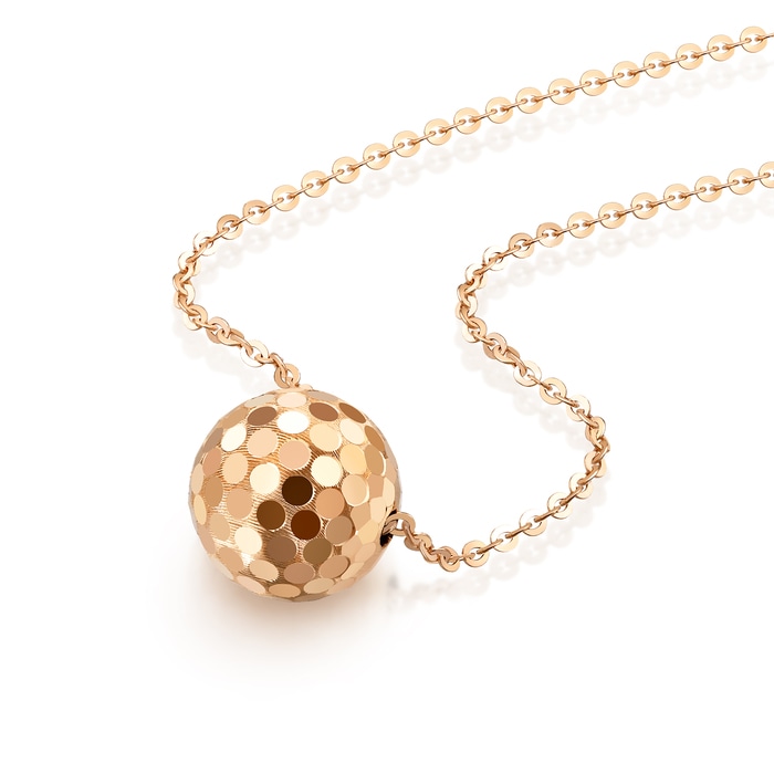 周生生18K 紅色黃金頸鍊,配以批花珠,閃耀動人,設計簡約大方,適合任何造型。