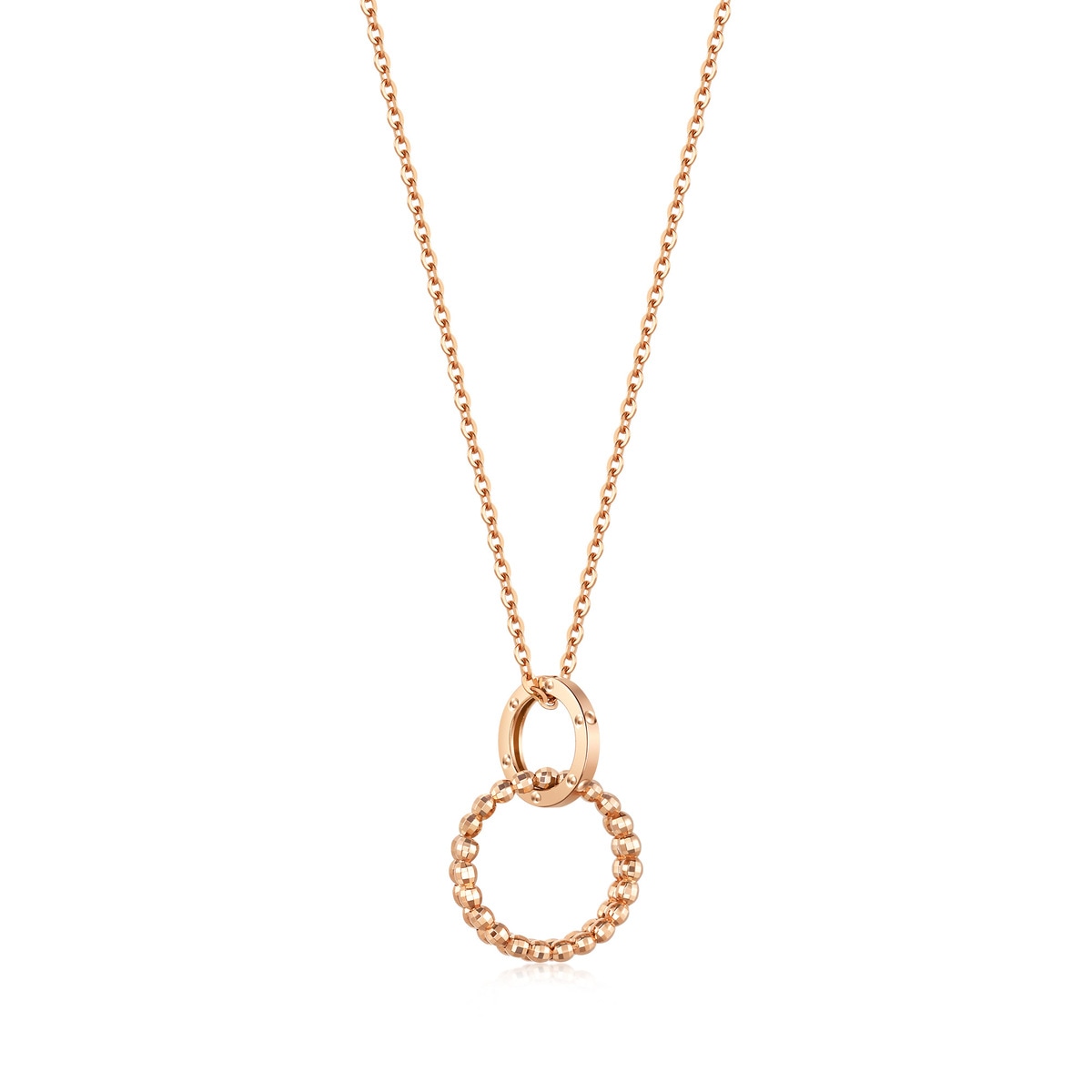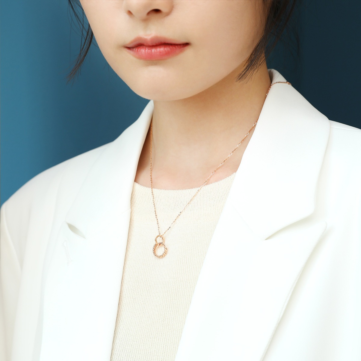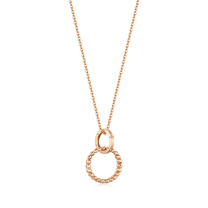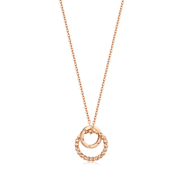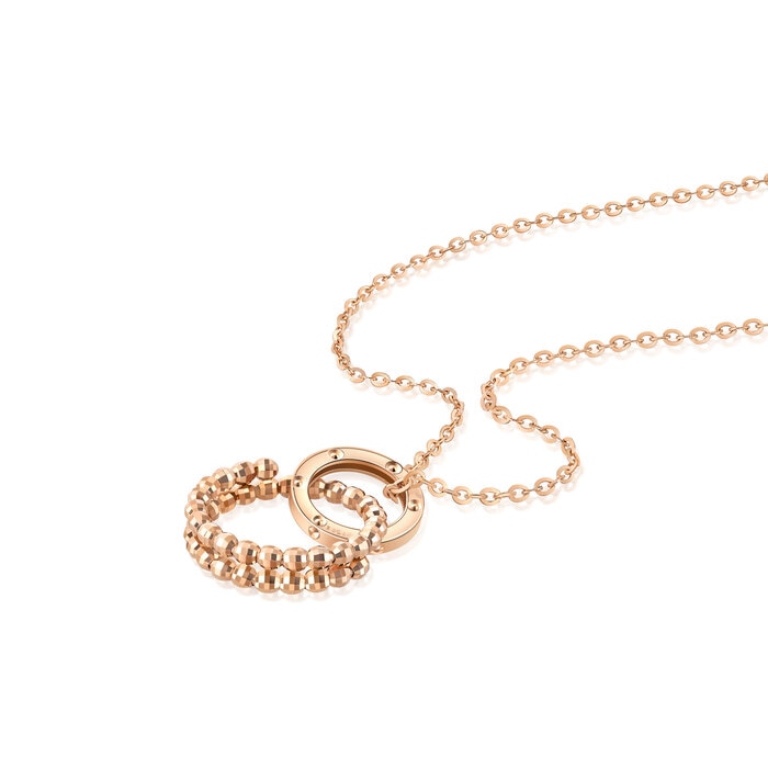 周生生18K紅色黃金頸鏈,以鏈環設計建構優雅美學,圓珠花紋與光面圓環緊扣,恰到好處地展現流麗之美,打造簡潔大方的現代風格。