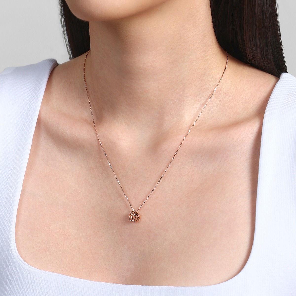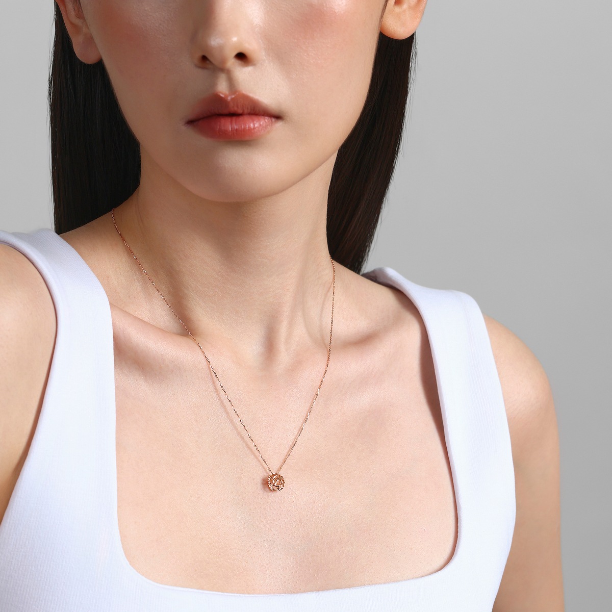 周生生18K紅色黃金頸鏈,以流麗線條捕捉玫瑰的優雅姿態,立體鏤空設計別出心裁,展現極致時尚魅力。