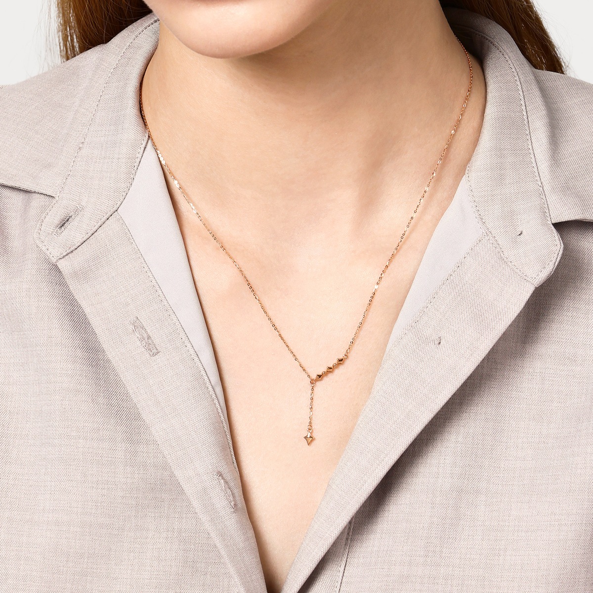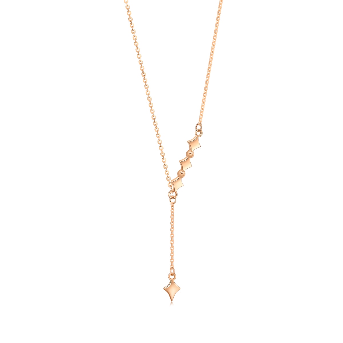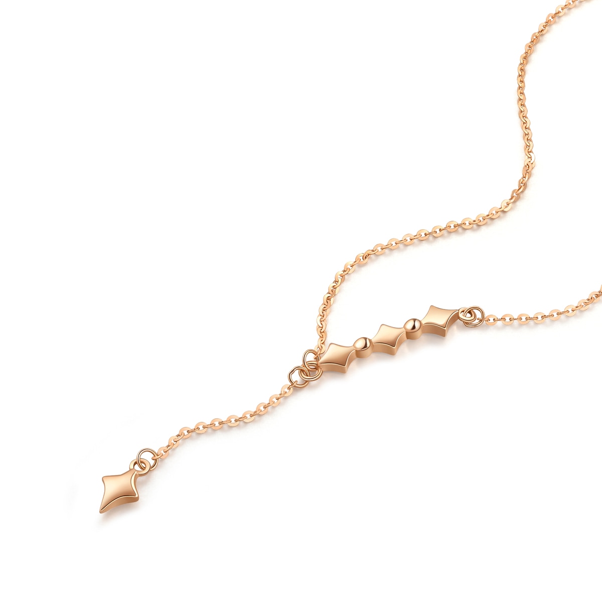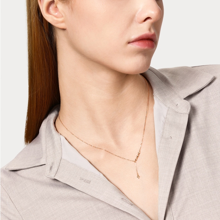 Chow Sang Sang - Elegant and sophisticated, this 18K red gold necklace features the beads and cruxes in a simple, smooth linear structure.