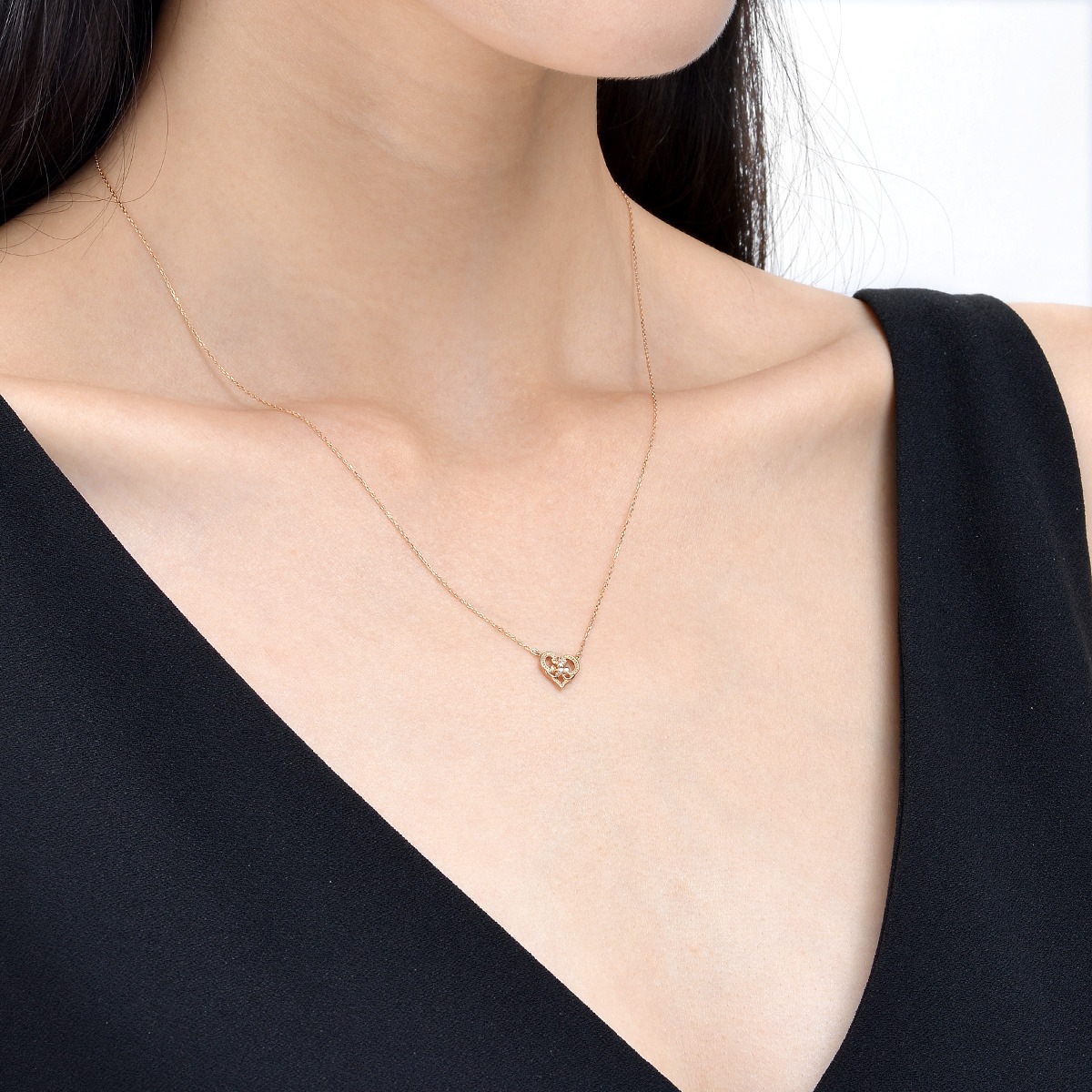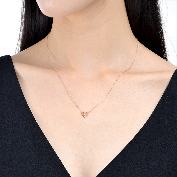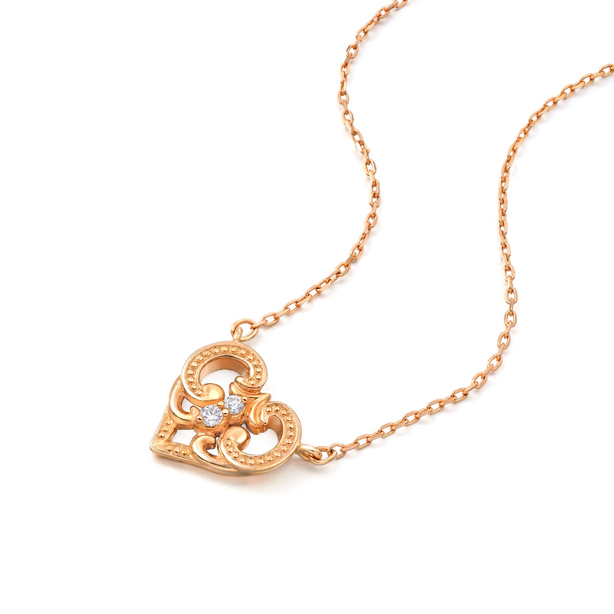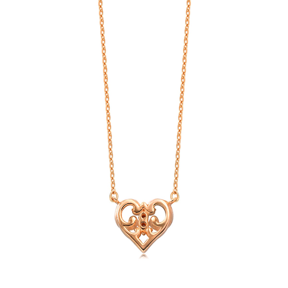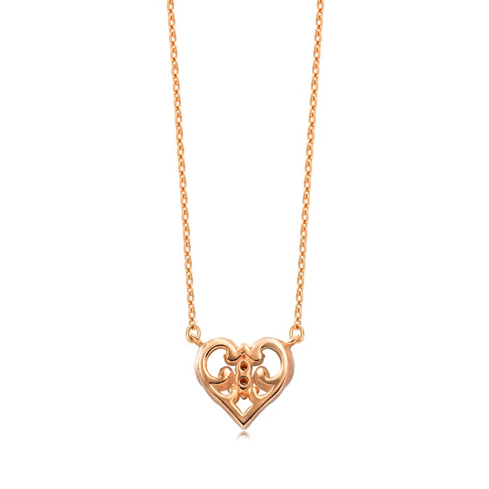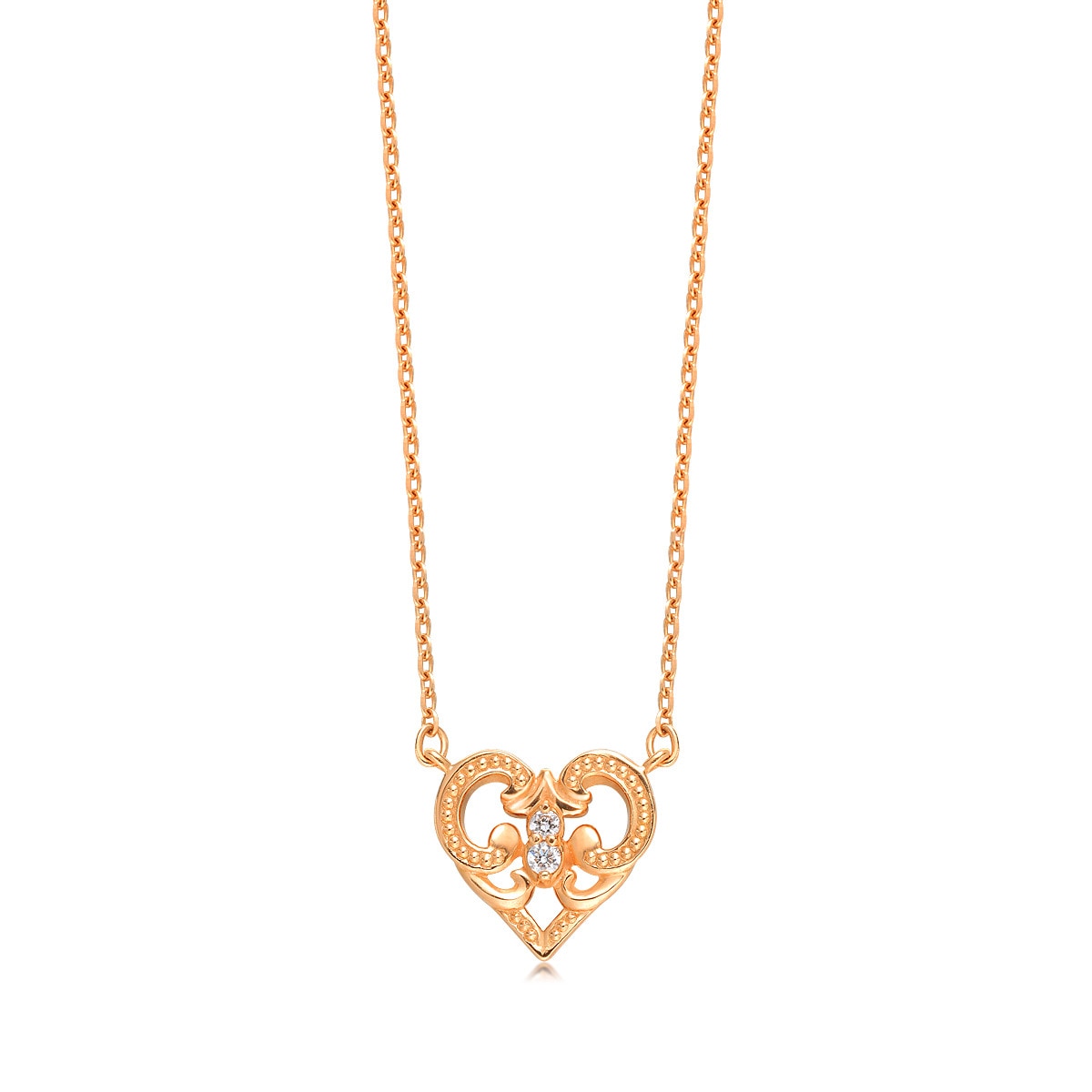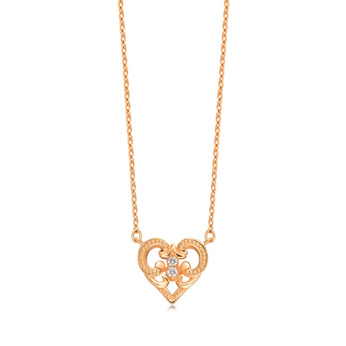 周生生以玫瑰金打造古典優美的心形吊墜,運用精湛工藝為吊墜鑲上碎石,效果更為時尚,適合日常佩戴。