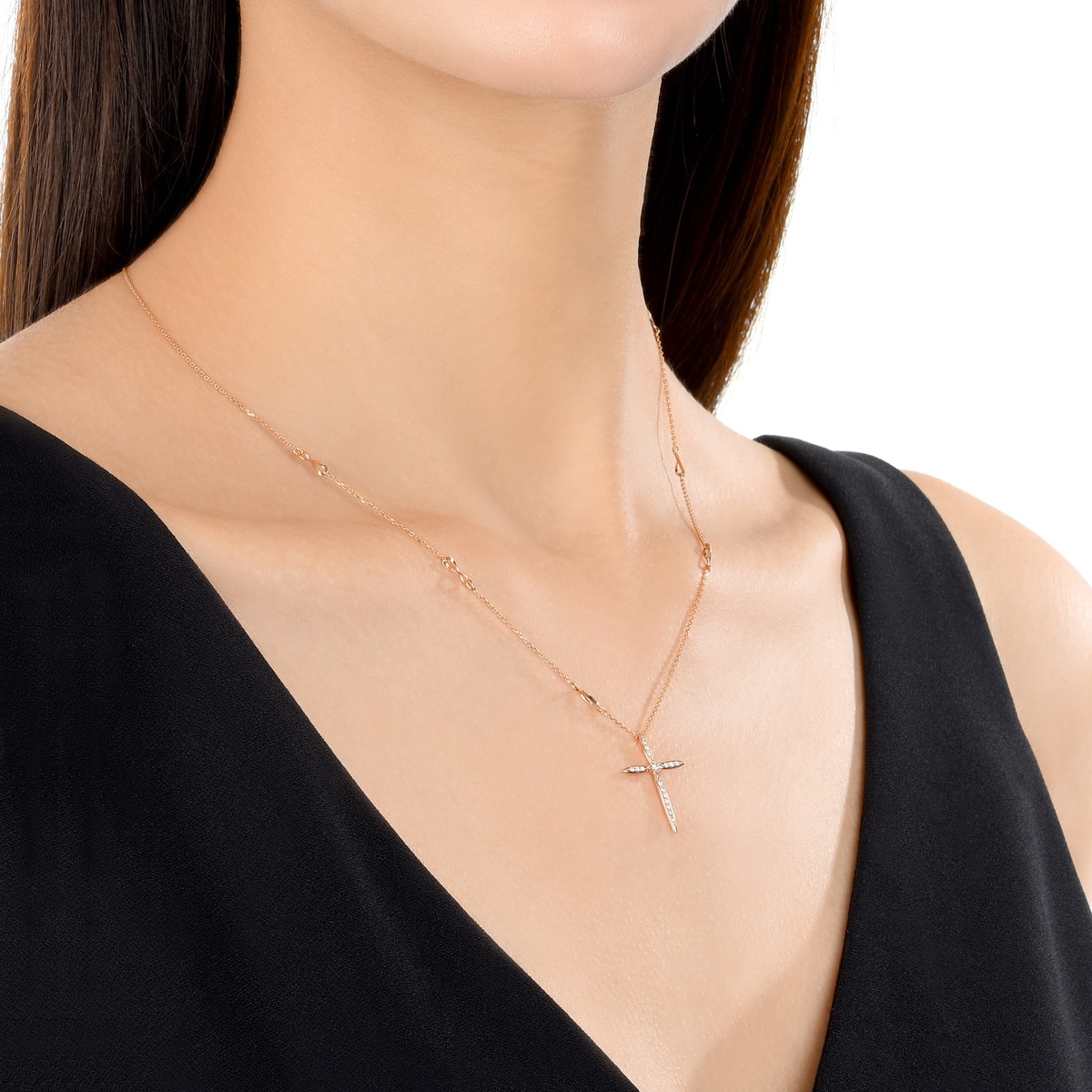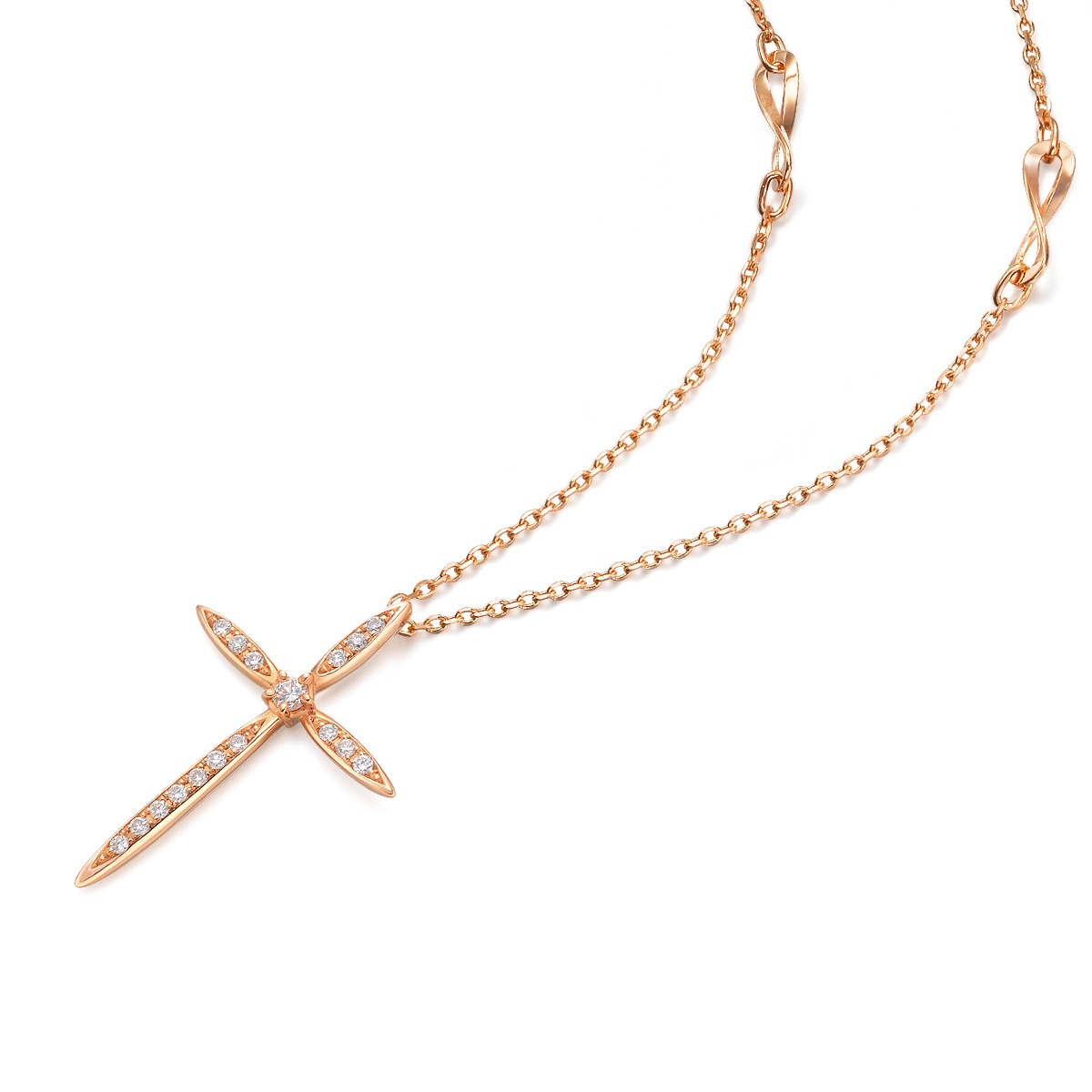 18K 紅色黃金十字架鑽石頸鍊
