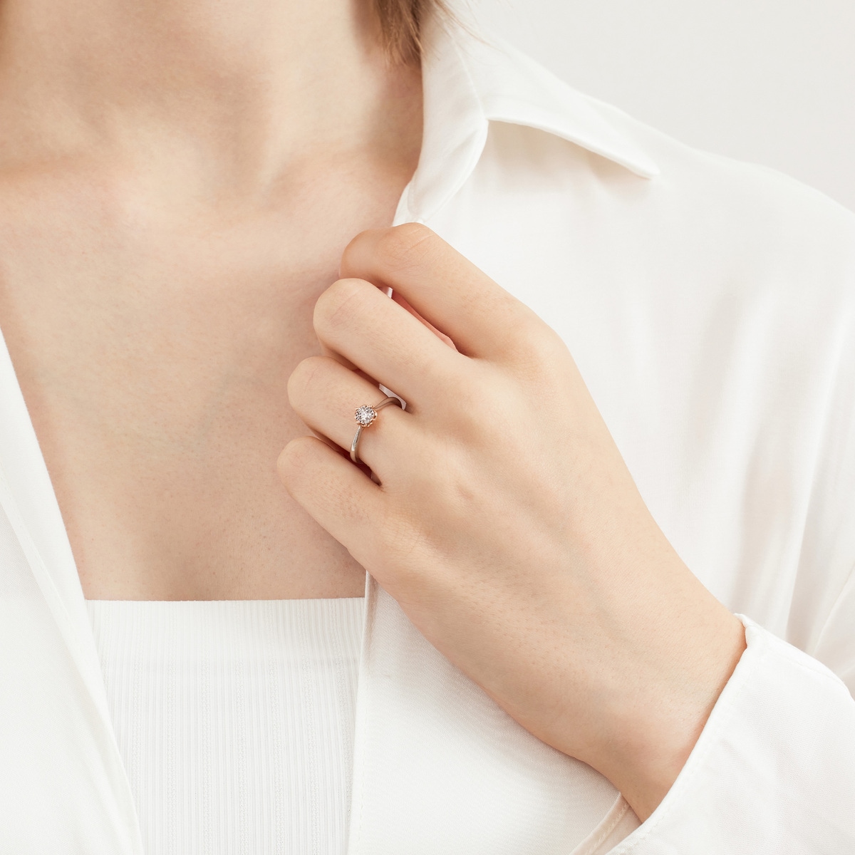 PROMESSA 「同心」18K白紅分色黃金鑽石戒指