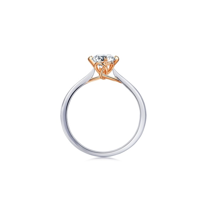 周生生同心結鑽戒,將代表姻緣的紅線化作18K紅金,編織同心繩結,猶如月老為一對新人牽繫紅線,是永結同心、浪漫迷人的愛情象徵。簡約的四爪單鑽設計,令主石的明亮光澤更顯華麗。真分色工藝讓紅金與白金的美麗對比,更添優雅。同心結有永結同心的意思,代表一生一世,訂結終生的承諾。(中國大陸 - 外觀設計專利申請號201930485132.1/中國香港 - 外觀設計申請號1914596.0/臺灣 - 設計專利申請號108305338/中國澳門 -設計及新型申請號D/002348)