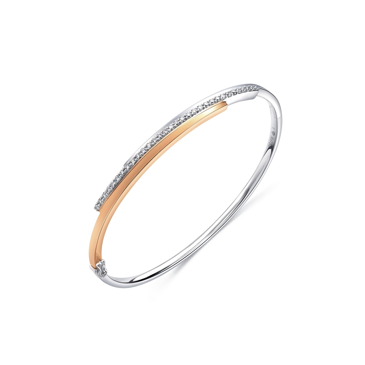 Chow Sang Sang - Express subdue grandeur with this delicate two-toned gold bangle. The band is embellished with a row of brimming diamonds that strikes the eye.