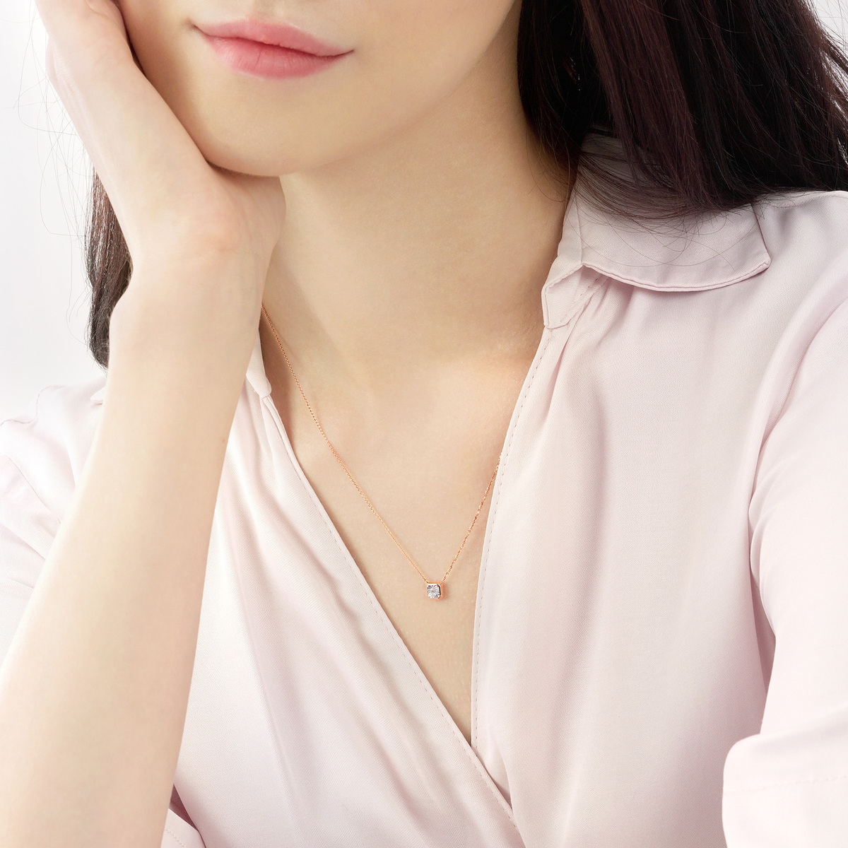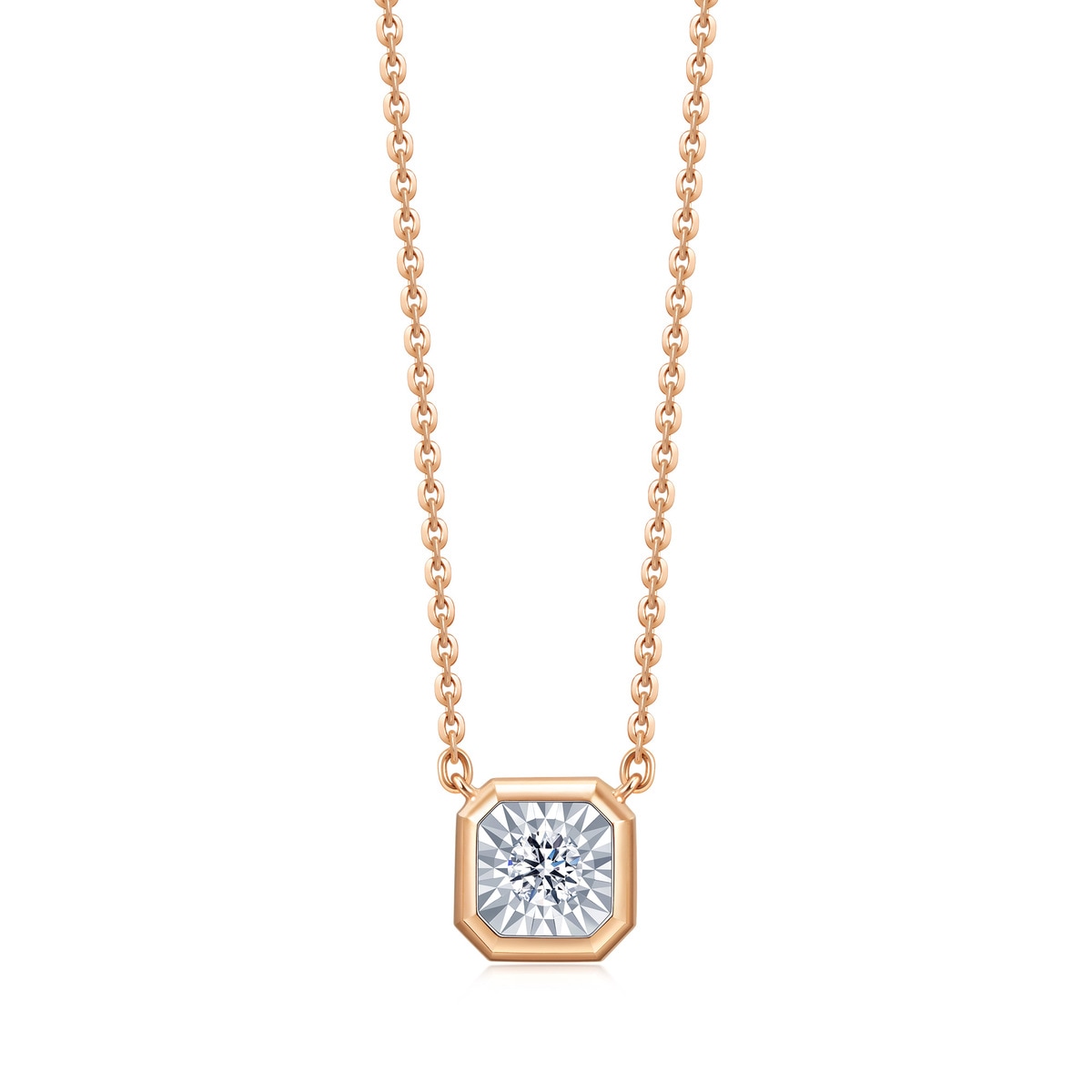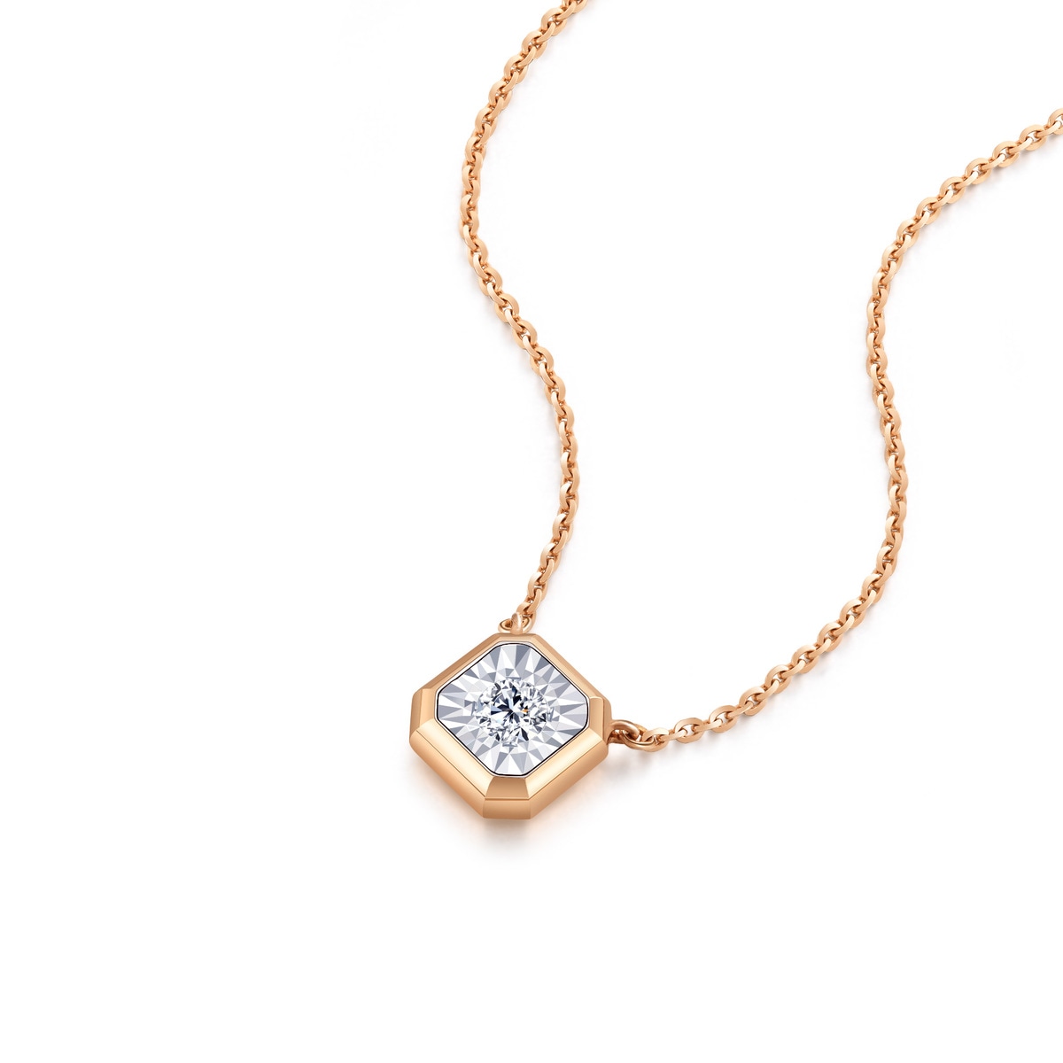 Chow Sang Sang - Crafted with the exclusive use of engraving and setting technique, this 18K white and red gold diamond necklace features the harmony of the diamond and die cutting for rhythm and light effects to magnify the gem. With simple design yet refined technique, this piece makes a fashionable addition to your everyday look.