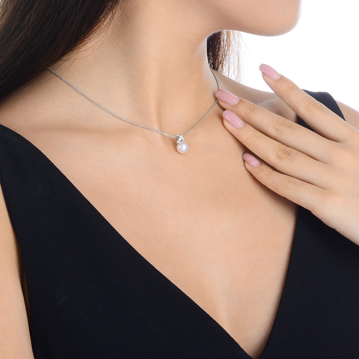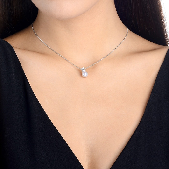 18K/750白色黃金日本Akoya養殖珍珠吊墜
