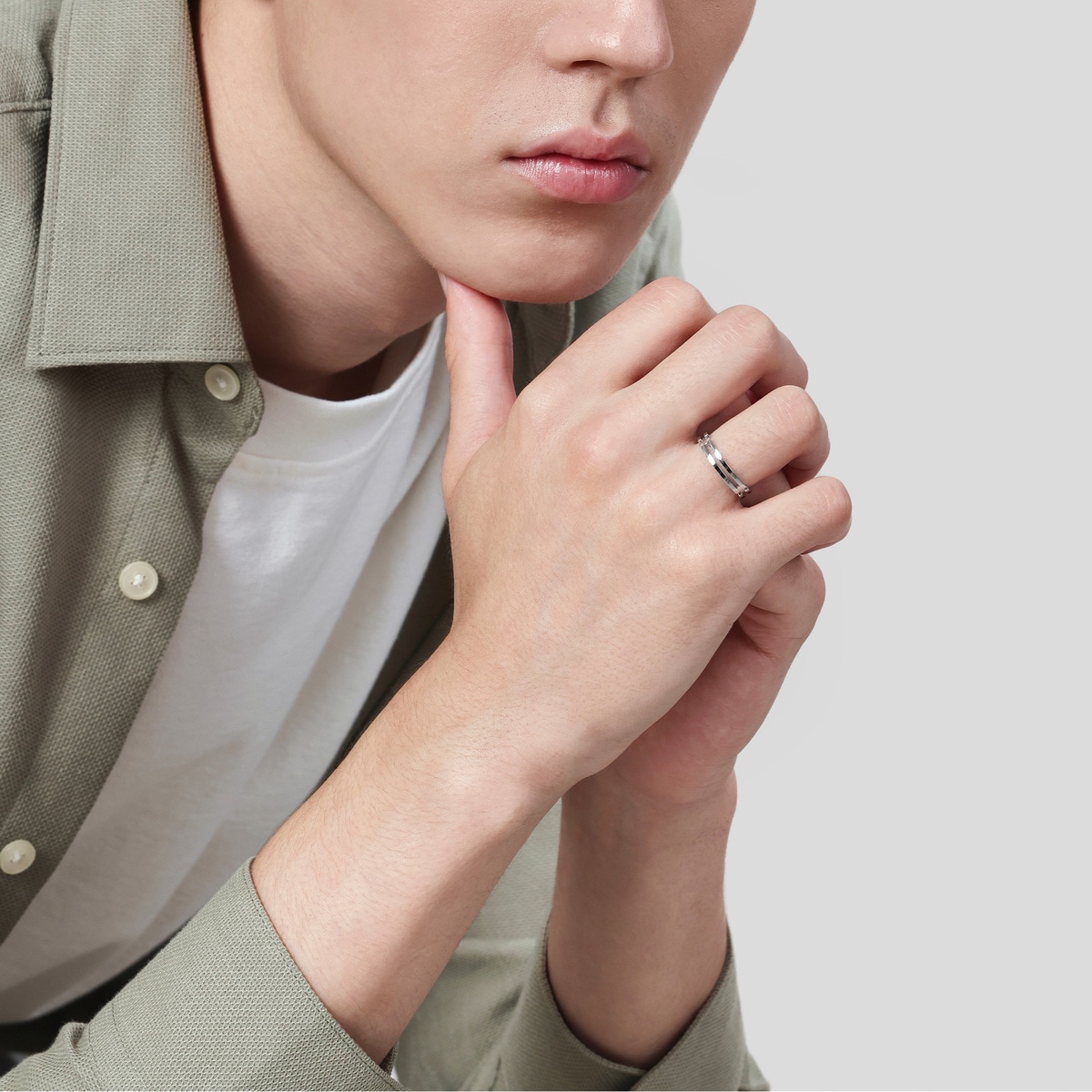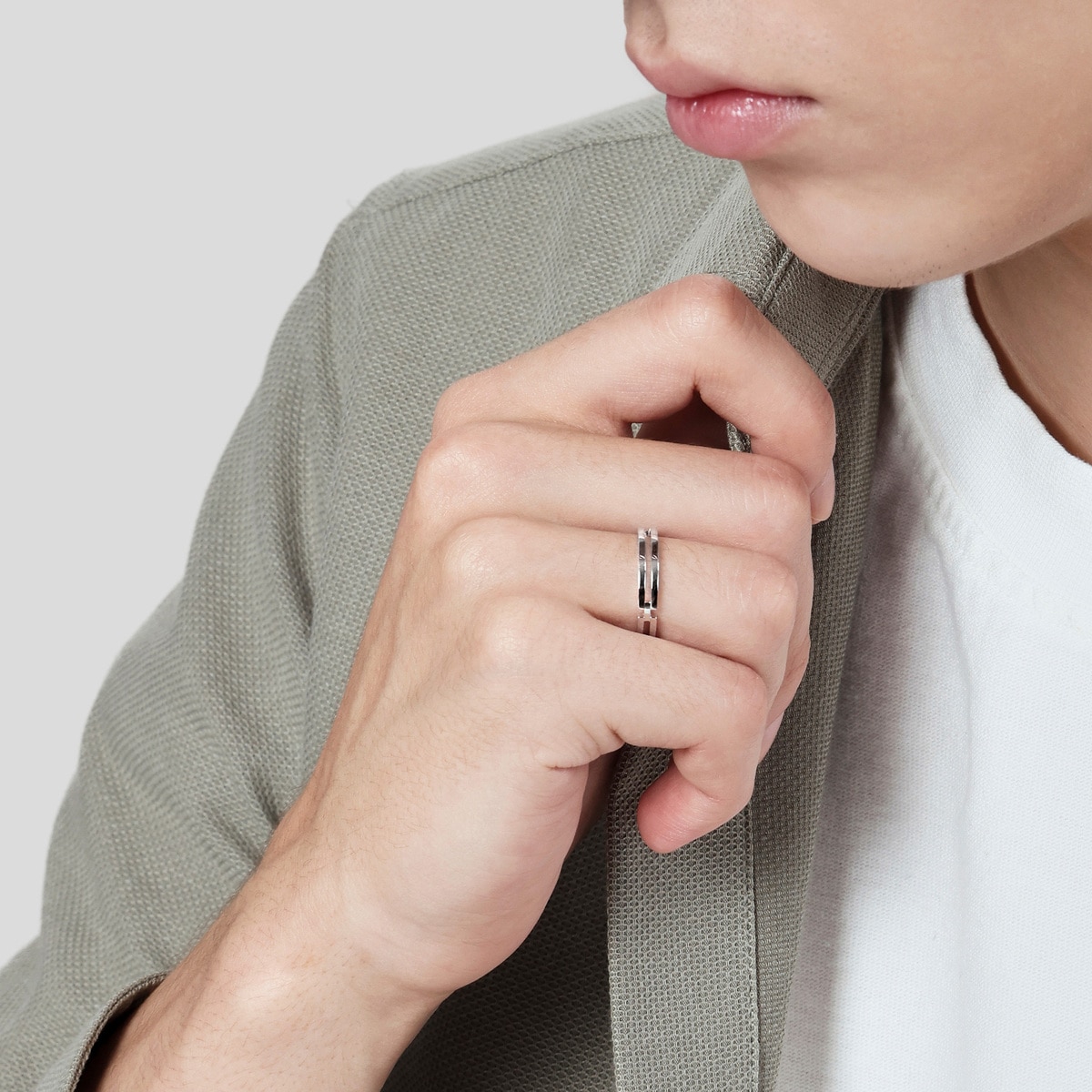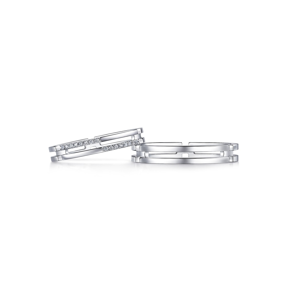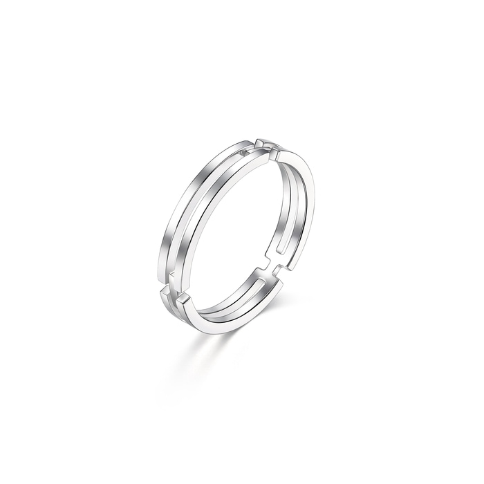 周生生18K白色黃金戒指,採用簡約流暢的雙戒圈設計,以俐落線條演繹現代風格,象徵此生「如一」的動人承諾,寓意細水長流、永恆不變的愛情,亦適合日常配襯,時尚百搭。