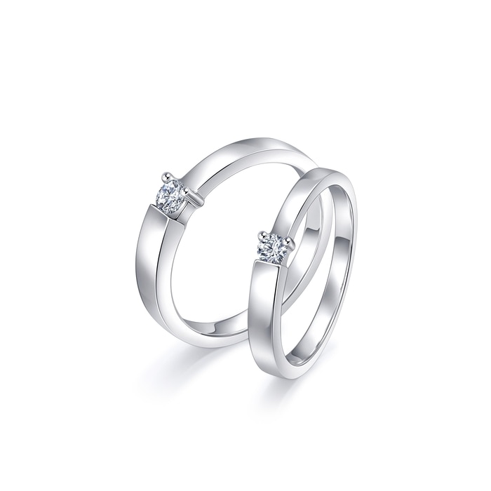 周生生戒指以「如一」為設計主題,以細膩工藝雕塑戒指造型,再鑲上一顆閃爍的圓鑽,散發動人的簡潔魅力。