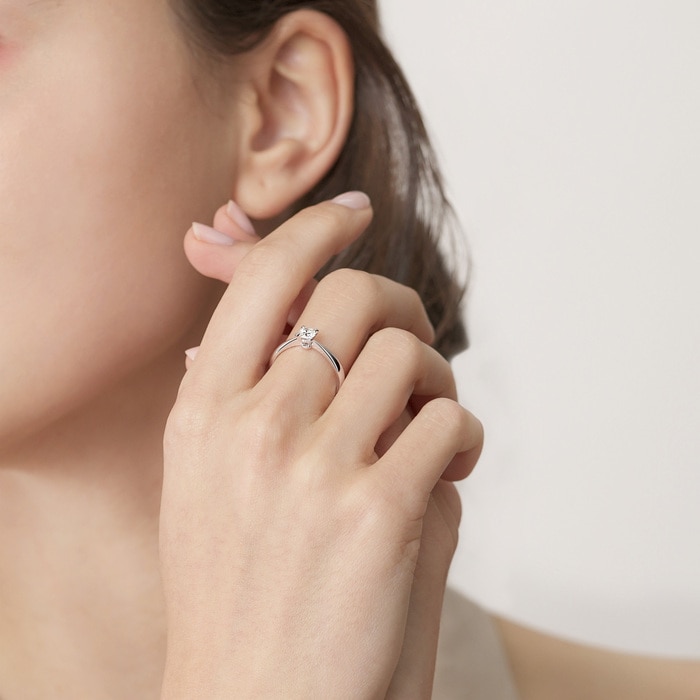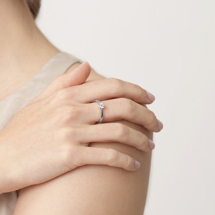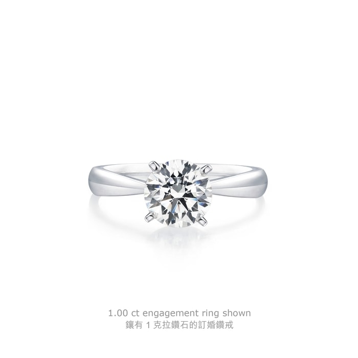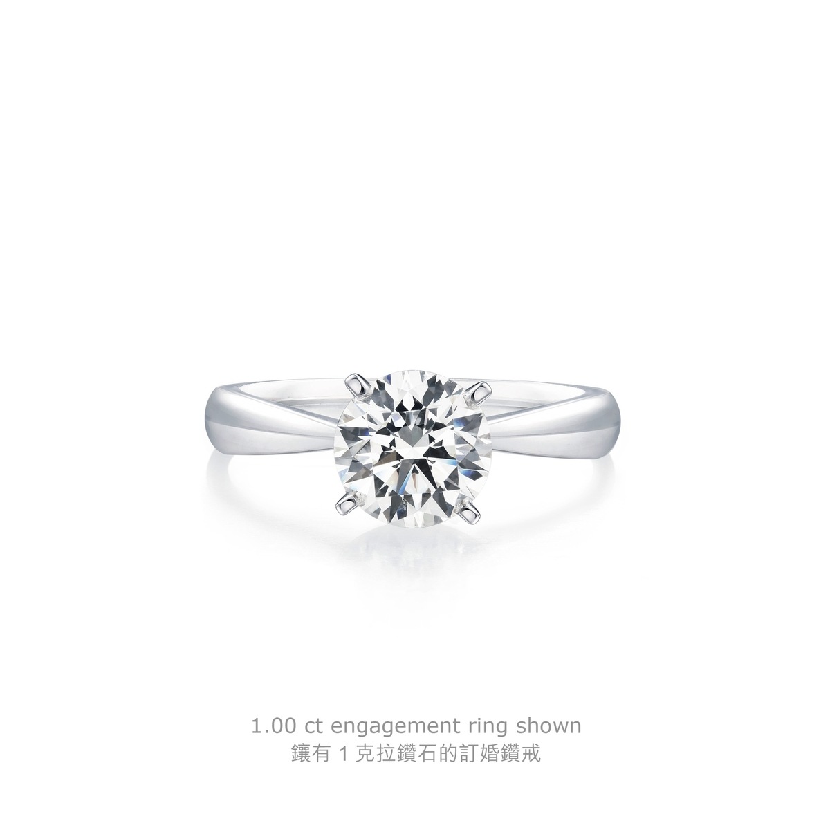 周生生戒指以「如一」為設計主題,閃亮美鑽以六爪鑲嵌,設計經典,同時凸顯主石,寓意此生如一。 經典求婚鑽戒簡約時尚,其中以四爪及六爪鑲嵌款式最為新人擁戴。象徵細水長流,永恆不變的承諾。