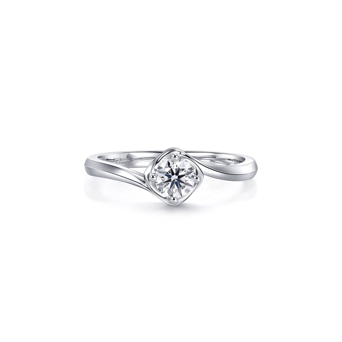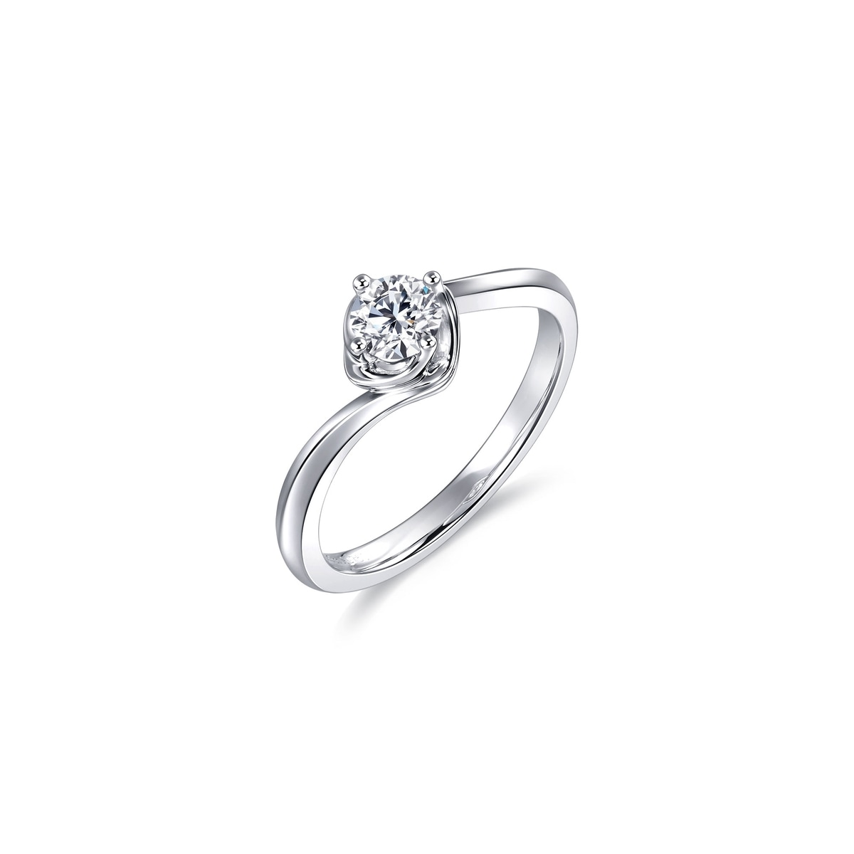 周生生18K白色黃金鑽石戒指,以「如一」為設計主題,閃亮美鑽以四爪縈繞,營造出顯鑽的視覺效果,線條靈動流暢,更蘊含「此生如一」的甜蜜寓意,極盡時尚優雅魅力。