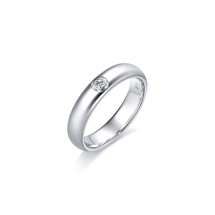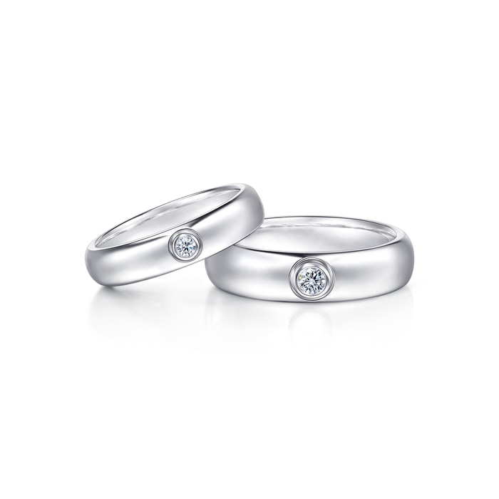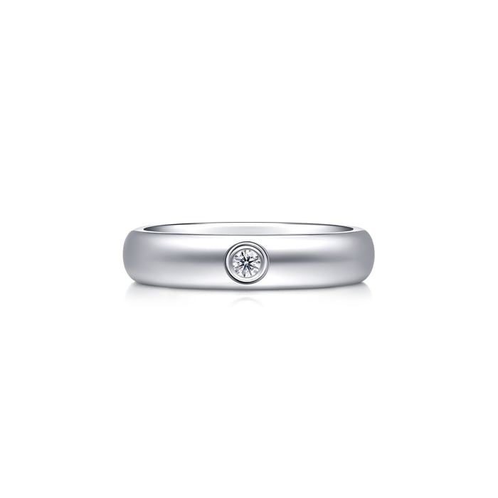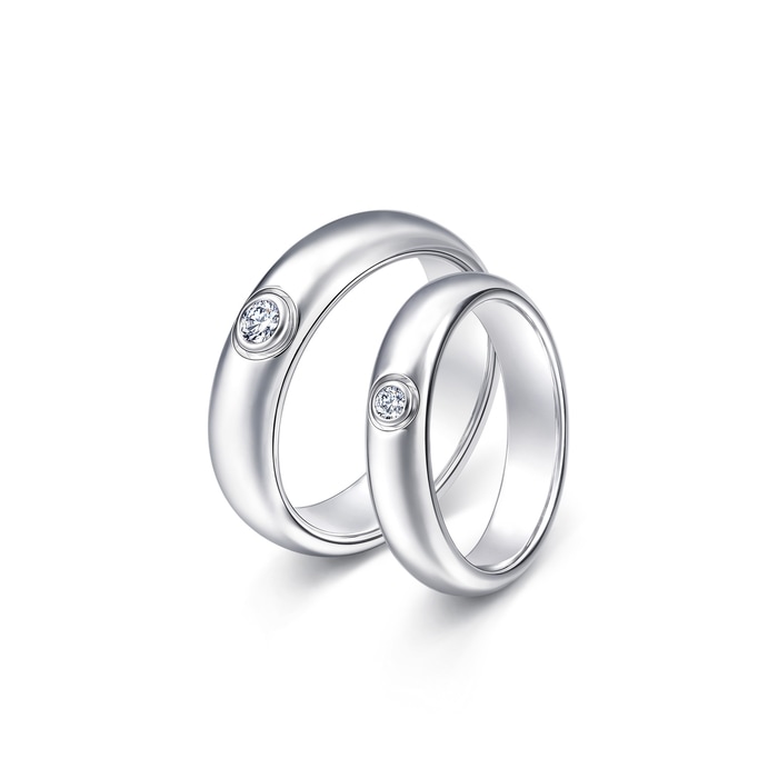 周生生18K白色黃金單鑽戒指,戒環採用弧面設計,線條流暢雋永,閃耀美鑽鑲嵌其間,簡約優雅,可隨心挑選K金顏色,適合各種日常時尚風格。